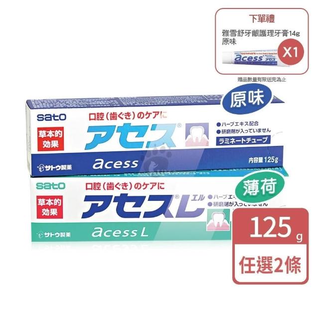Sato日本佐藤 雅雪舒牙齦護理牙膏125g 原味/薄荷任選 (2入+贈14g/條)_樂齡生醫