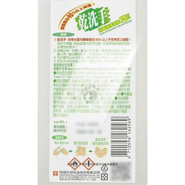 中化健康生技中化 乾洗手消毒潔手凝露75%(檸檬清香味)500mlX3瓶+派頓潔康酒精75%X1瓶+100cc酒精分裝噴霧瓶