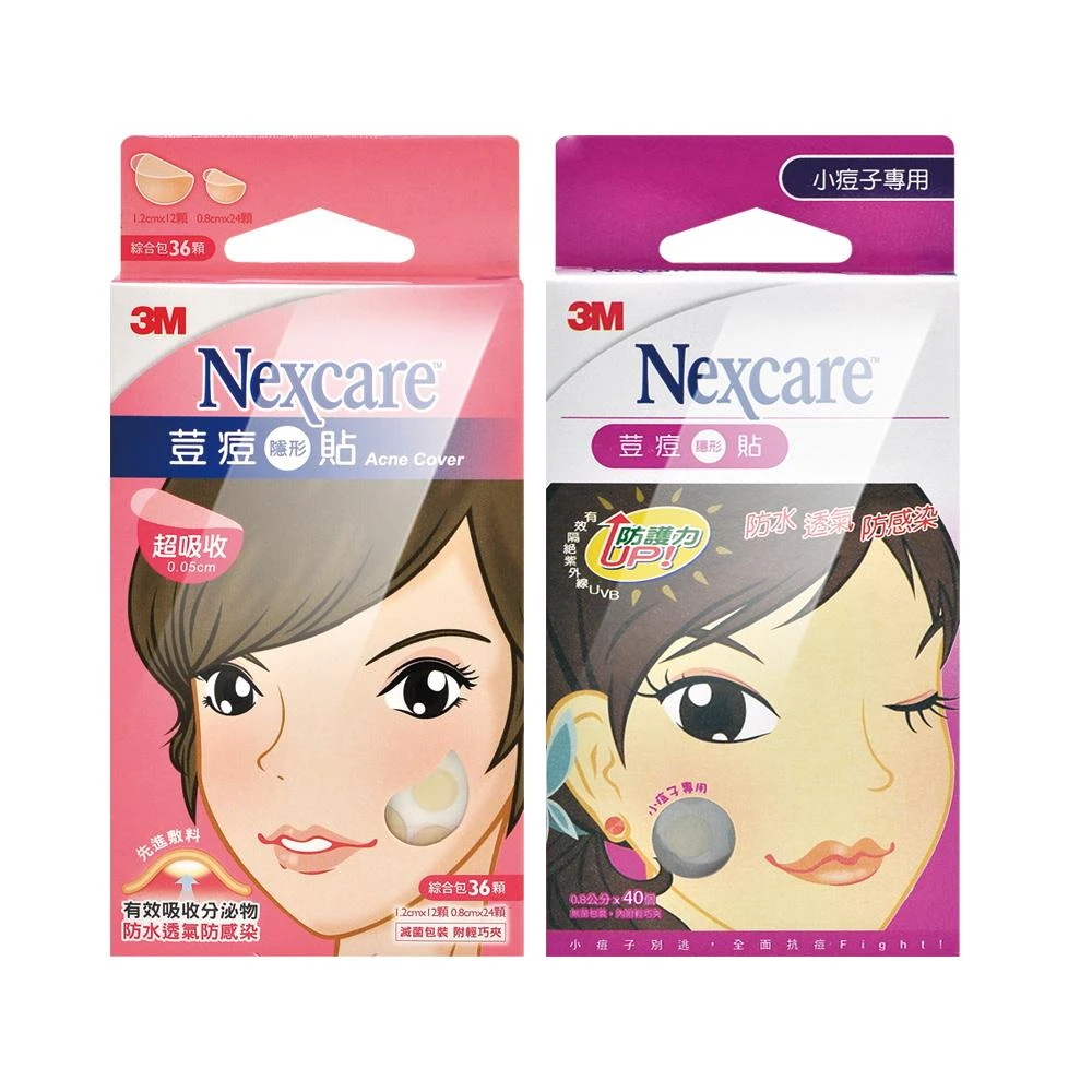 3M Nexcare荳痘隱形貼3盒組_綜合包36顆(1.2cmX12顆+0.8cmX24顆)/小痘子專用40顆(0.8cm)兩款任選/原廠公司貨_樂齡生醫