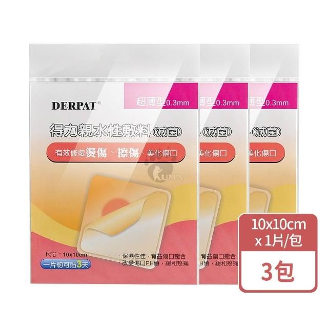 藥聯 得力 親水性敷料(滅菌) 10X10cm(超薄款0.3mm / 標準款0.6mm(1片/包))兩種款式任選_3包入