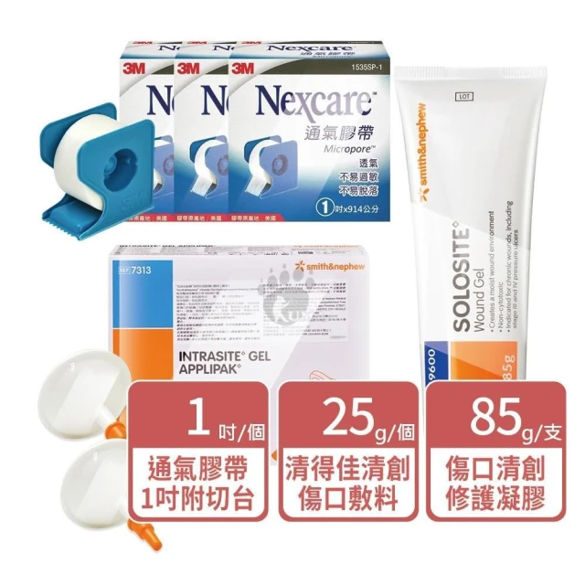 史耐輝 索羅特傷口清創修護凝膠(未滅菌)85g+清得佳清創傷口敷料(滅菌)25g+3M 通氣膠帶1吋(超值組)_樂齡生醫