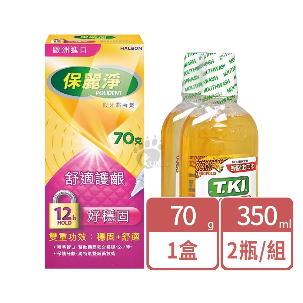 Polident 保麗淨假牙黏著劑(未滅菌)穩固+舒適70g+鐵齒蜂膠漱口水350ml*2瓶/組(超值組)原廠公司貨_樂齡生醫
