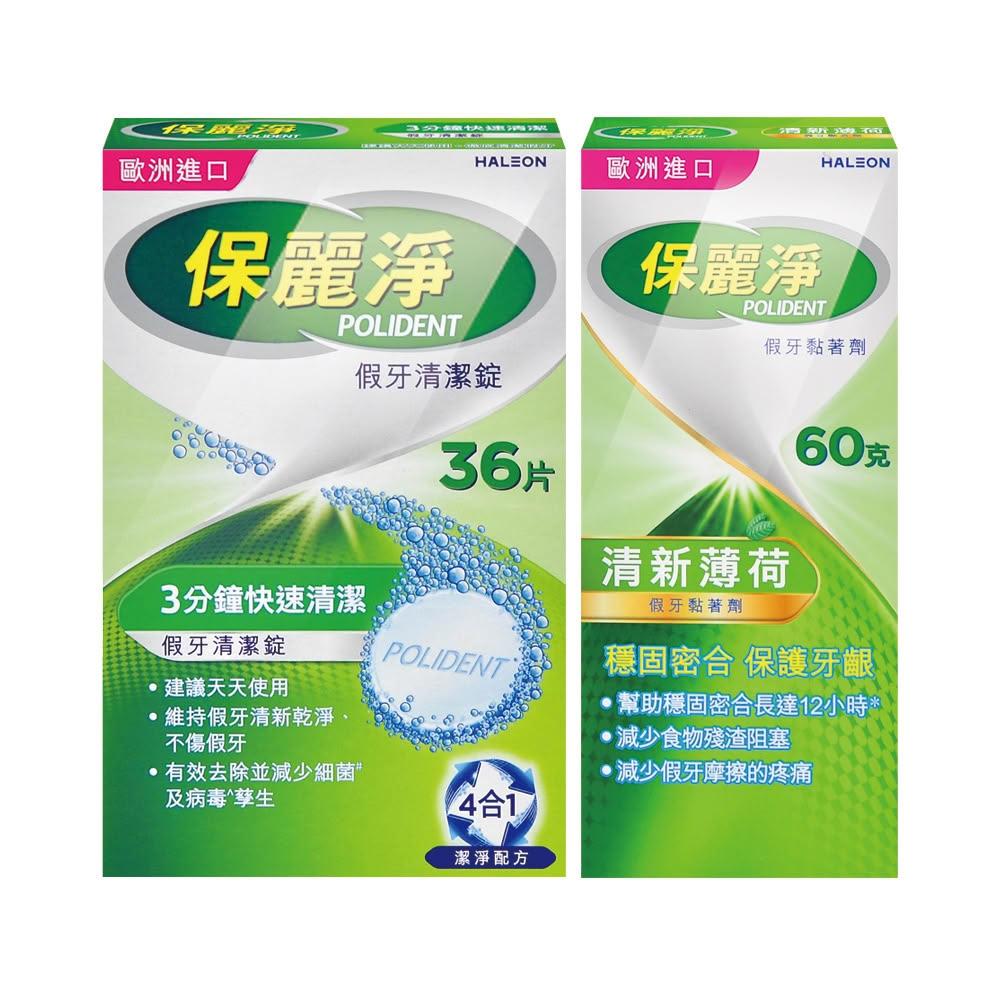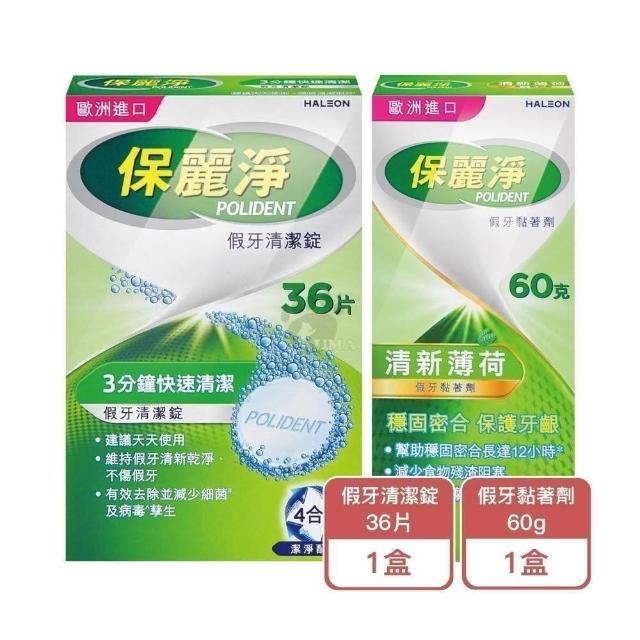 Polident 保麗淨假牙清潔錠(未滅菌)36片/盒+假牙黏著劑(未滅菌)60g/盒-清新薄荷(清潔套組)原廠公司貨_樂齡生醫