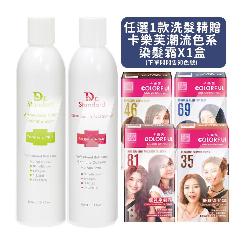 生達醫藥集團Dr.Standard胺基酸養髮洗髮精300ml(咖啡因胺基酸/薑黃升級配方)下單任選1款贈卡樂芙染髮霜x1盒