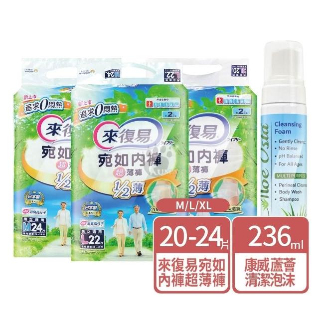 來復易宛如內褲 超薄褲X3包(尺寸任選M24片/L22片/XL20片)+康威蘆薈清潔泡沫236mlX1瓶(照護組)樂齡生醫