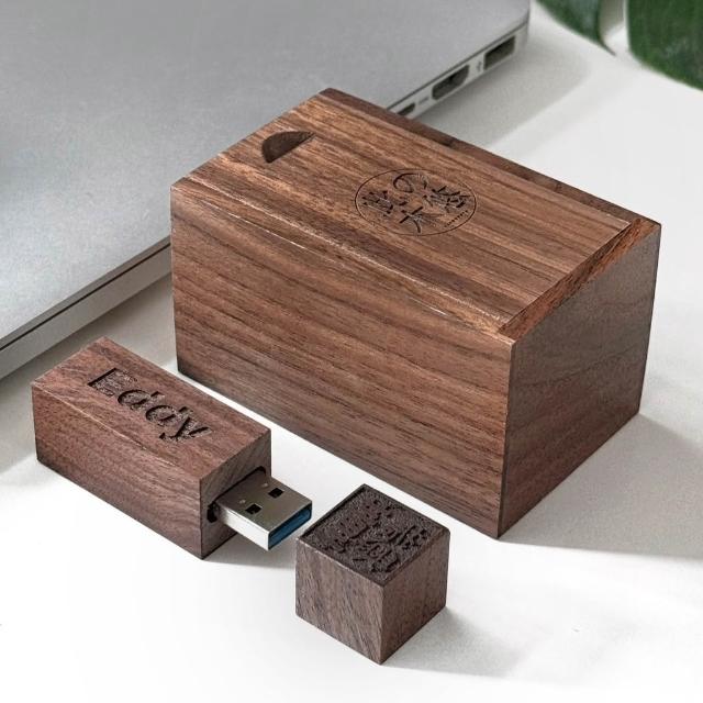 客製化原木USB隨身碟64G 印章款 含木製外盒