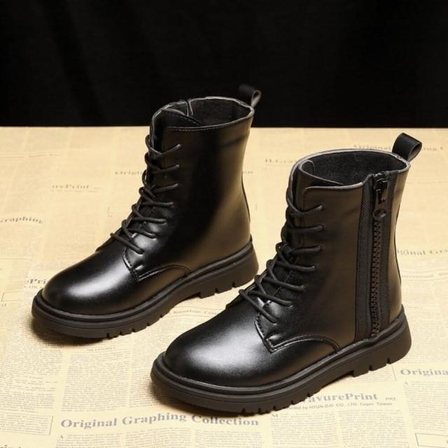 女童黑色短靴 靴子 台灣現貨 拉鍊穿脫 軍靴 馬丁靴 兒童