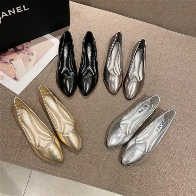 銀色金色平底鞋 娃娃鞋 女鞋 快速出貨 尖頭 黑色 35-41號