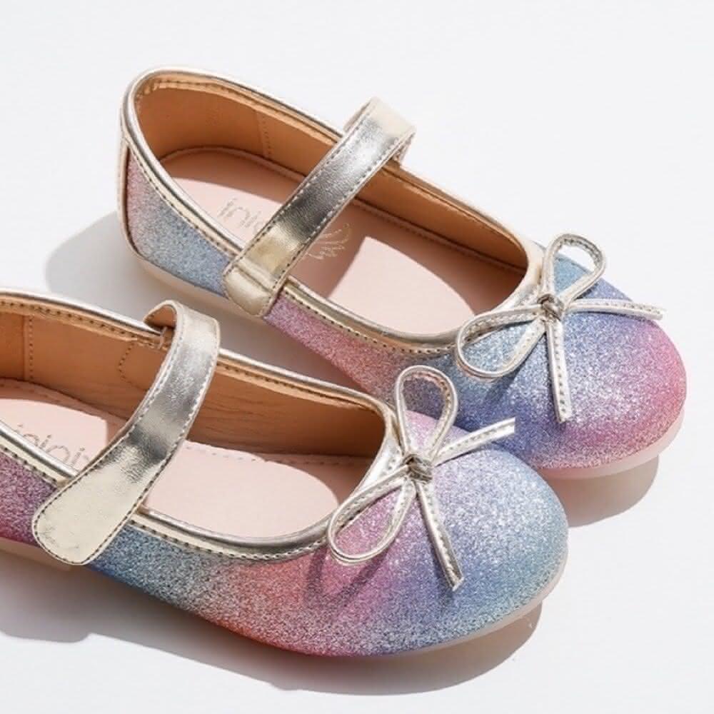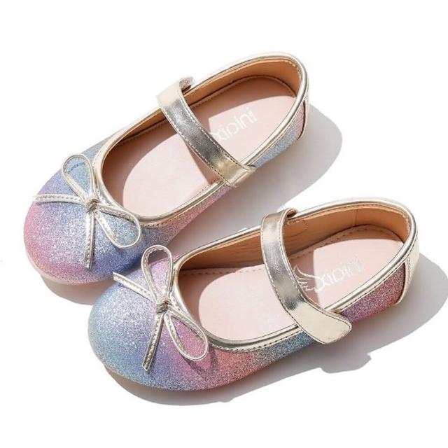 漸層彩虹 女童娃娃鞋 獨家訂製款 公主鞋 休閒鞋 魔鬼氈 平底鞋 童鞋 圓頭蝴蝶結