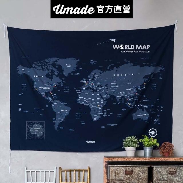 Umade世界地圖掛布 海軍藍色 S/M 附磁鐵地標扣 牆壁裝飾 房間佈置 居家情境裝飾 情侶禮物 生日禮物