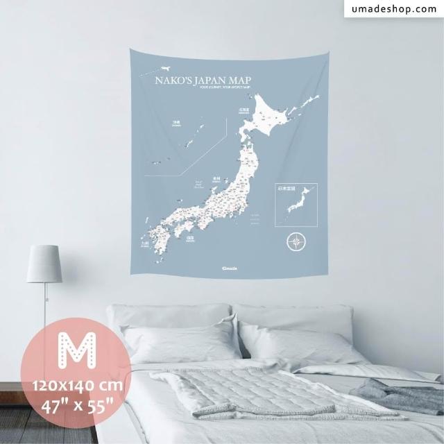 Umade日本地圖掛布 月白灰色 S/M 附磁鐵地標扣 日本自由行 日本景點 牆壁裝飾 房間佈置 情侶紀念 交換禮物 旅行紀錄