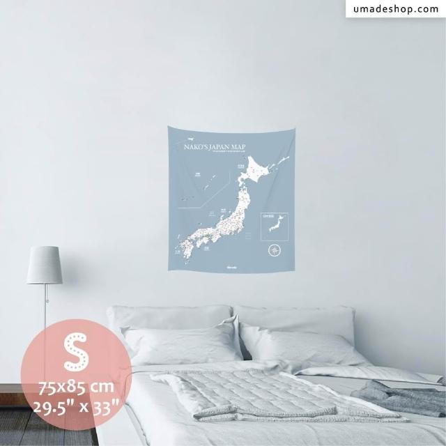 Umade日本地圖掛布 月白灰色 S/M 附磁鐵地標扣 日本自由行 日本景點 牆壁裝飾 房間佈置 情侶紀念 交換禮物 旅行紀錄