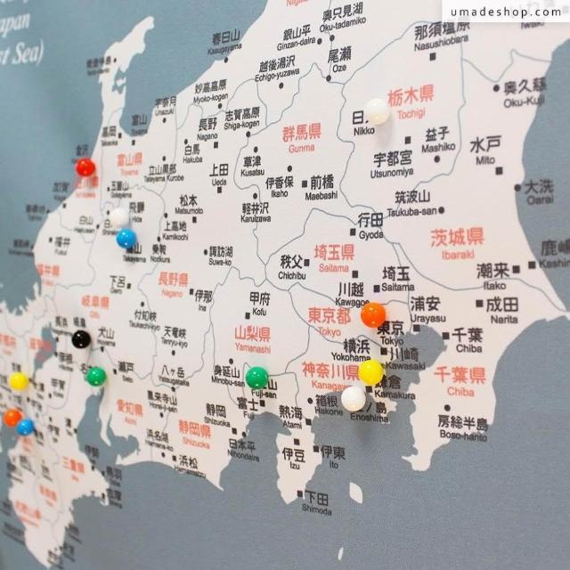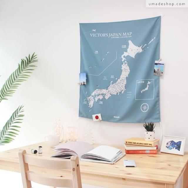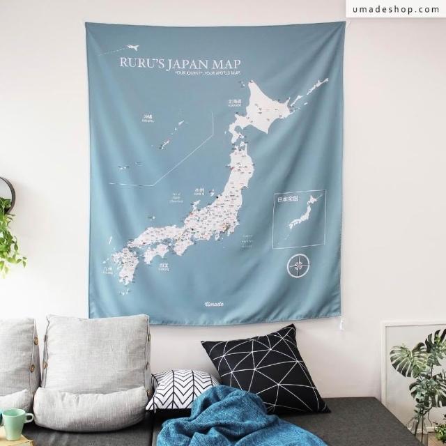 Umade日本地圖掛布 月白灰色 S/M 附磁鐵地標扣 日本自由行 日本景點 牆壁裝飾 房間佈置 情侶紀念 交換禮物 旅行紀錄