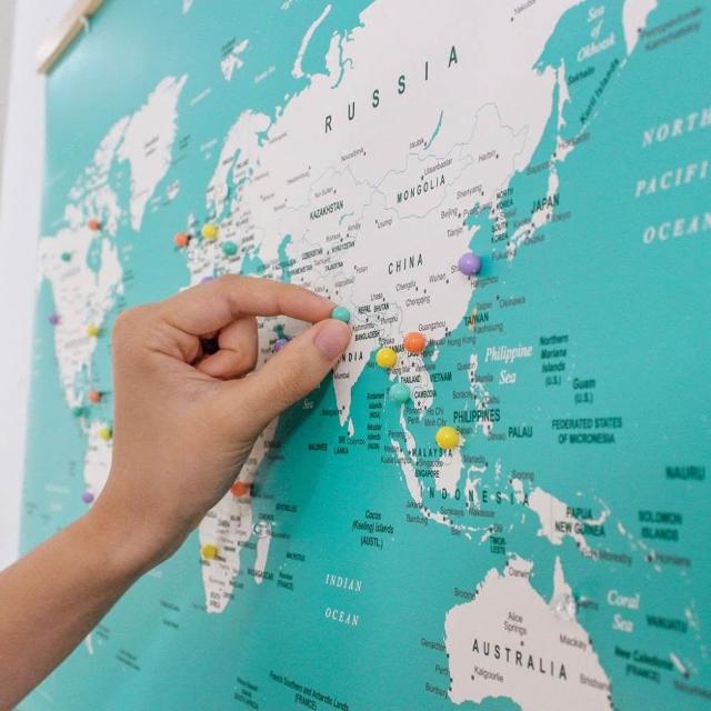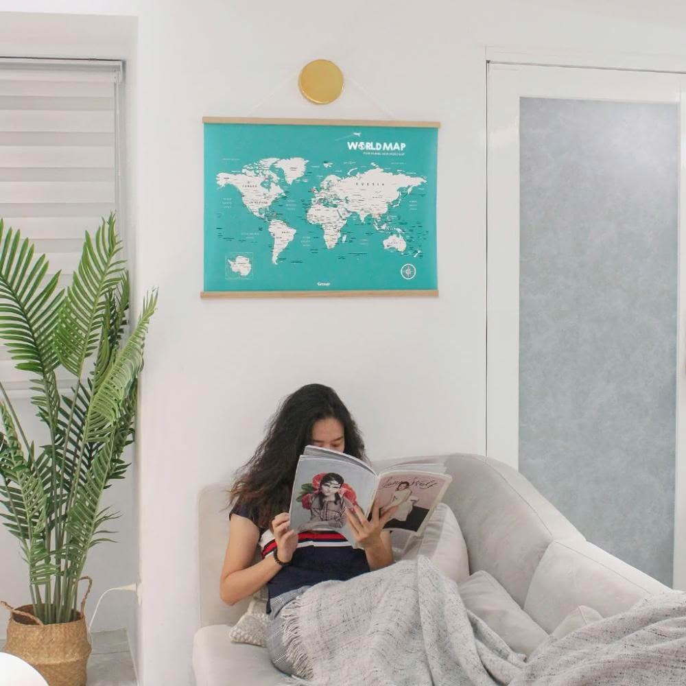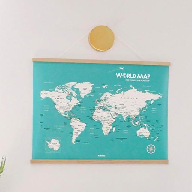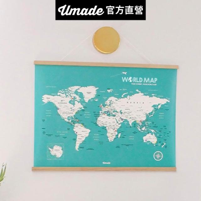 Umade世界地圖木框海報 湖水綠色 附磁鐵地標扣 (房間布置 居家裝飾 客廳書房辦公室 旅行紀念 情侶 環遊世界 生日禮物推薦)
