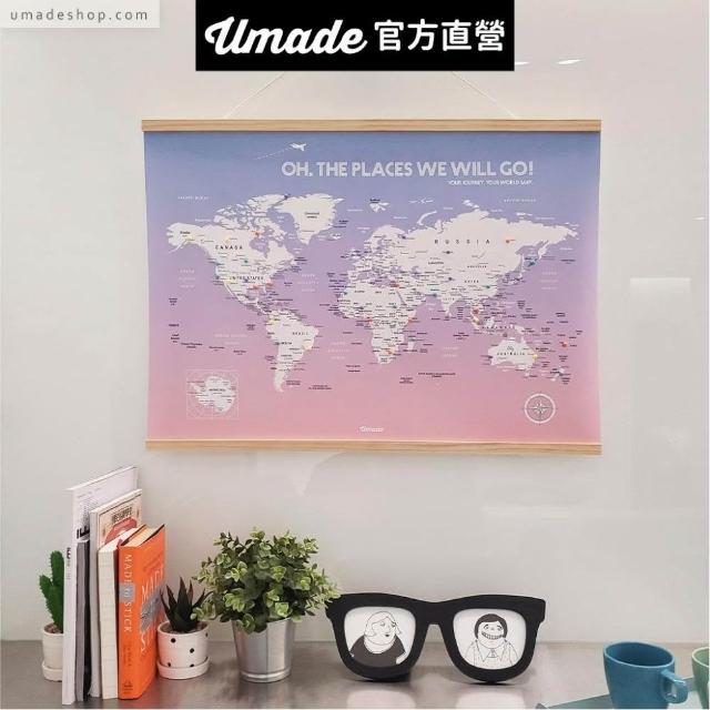 Umade世界地圖木框海報 輕柔粉色 附磁鐵地標扣 (房間佈置 居家情境裝飾 旅行紀念 環遊世界 女友禮物 生日禮物 送禮推薦)