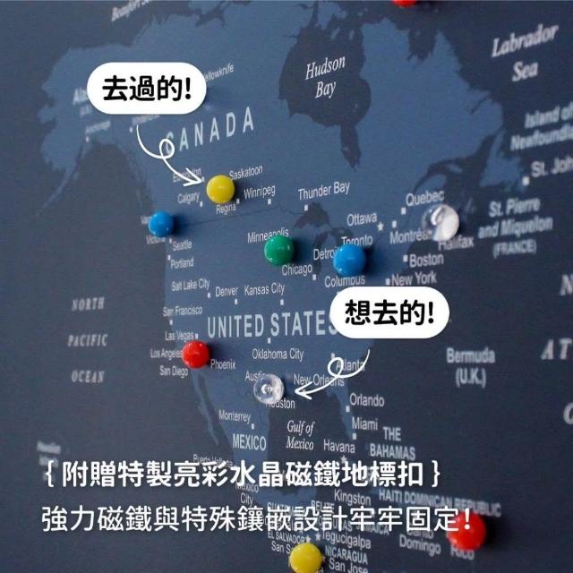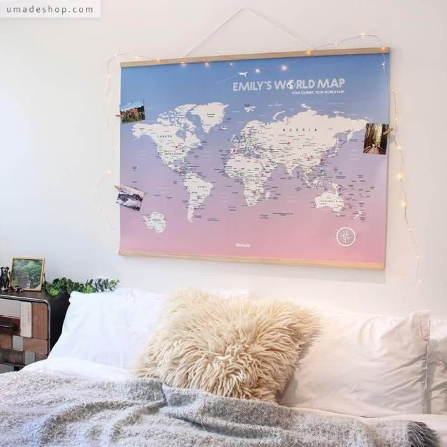 Umade世界地圖木框海報 輕柔粉色 附磁鐵地標扣 (房間佈置 居家情境裝飾 旅行紀念 環遊世界 女友禮物 生日禮物 送禮推薦)