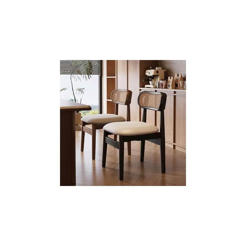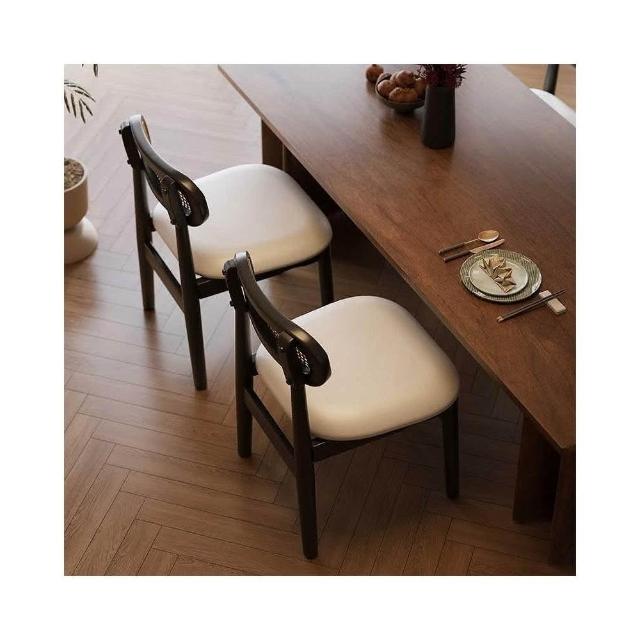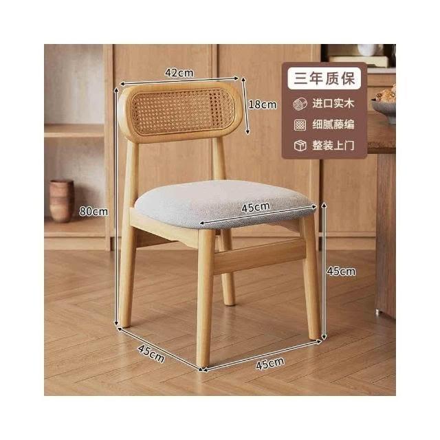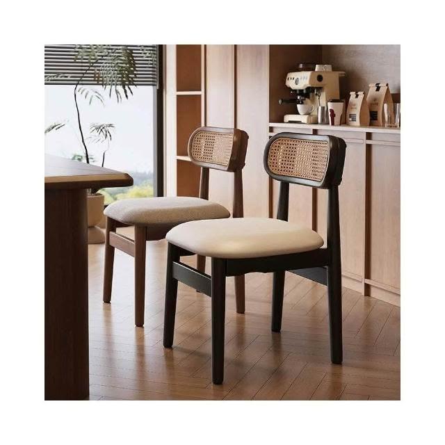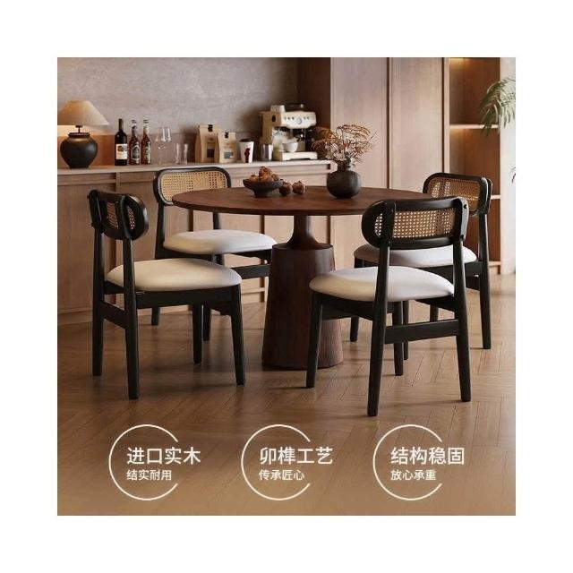 中古餐椅家用藤編椅子法式復古高級靠背椅實木藤椅黑色輕奢餐桌椅