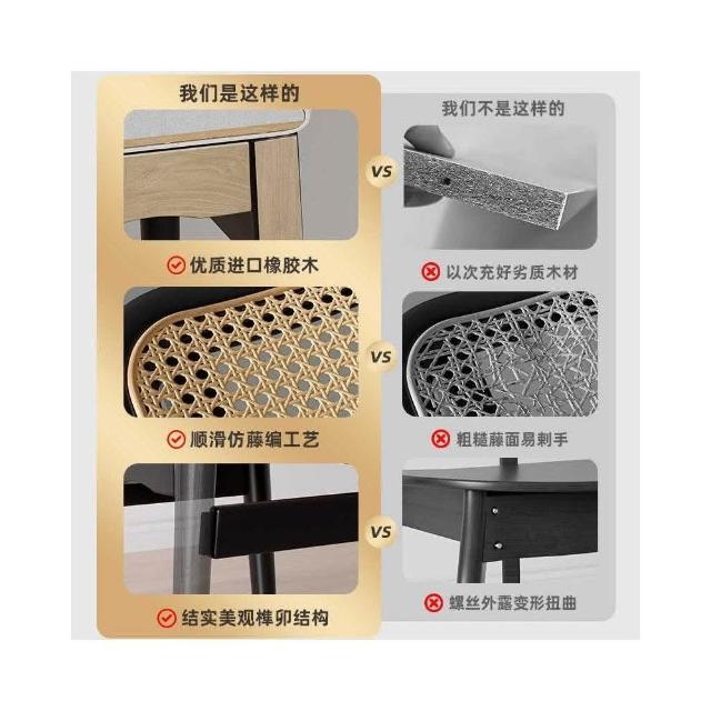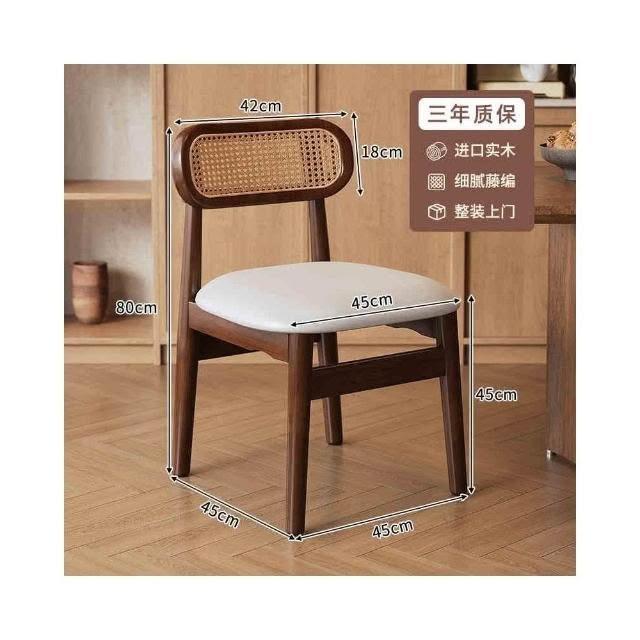 中古餐椅家用藤編椅子法式復古高級靠背椅實木藤椅黑色輕奢餐桌椅