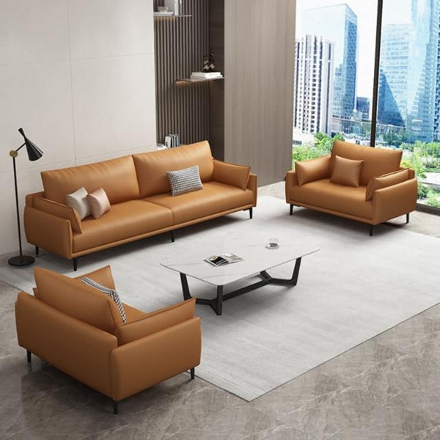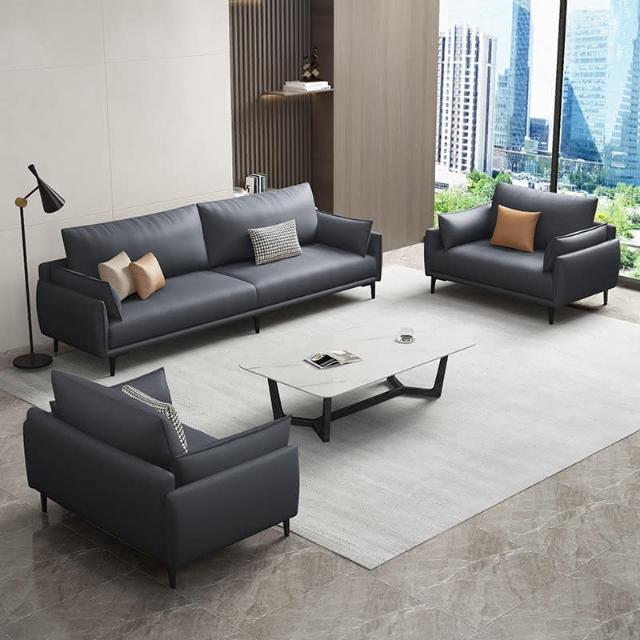 辦公沙發 商務沙發 接待沙發 北歐辦公室沙發真皮現代簡約小型三人位商務接待會客沙發茶几組合