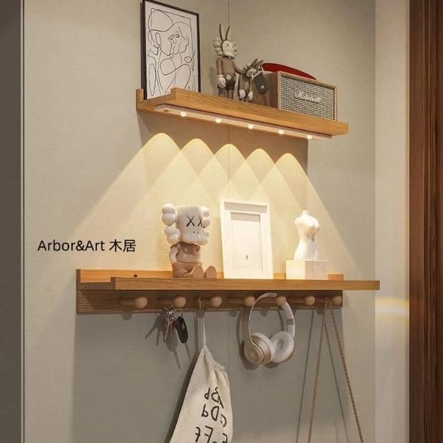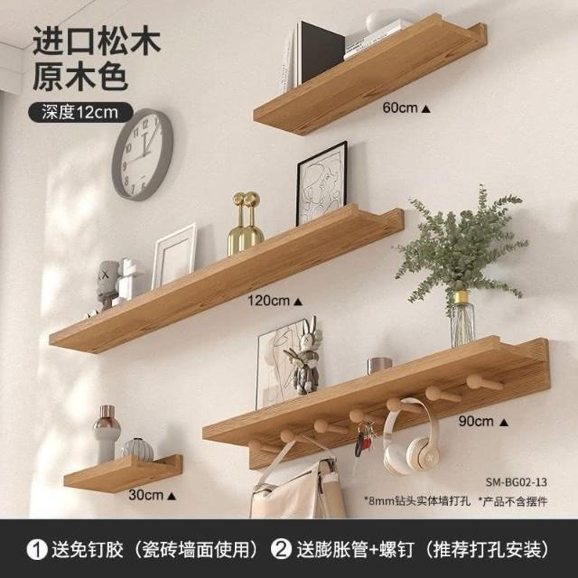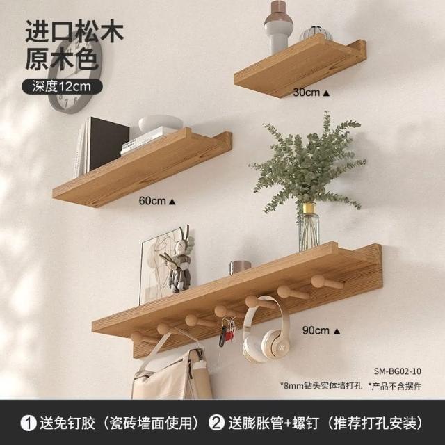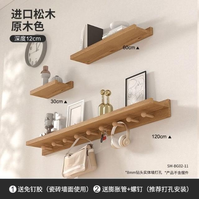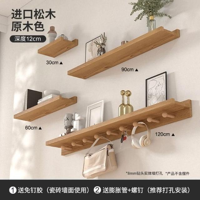 隔闆 客廳打孔臥室 一字置物架 隔闆 創意衣服免北歐掛鈎實木入戶玄關墻上