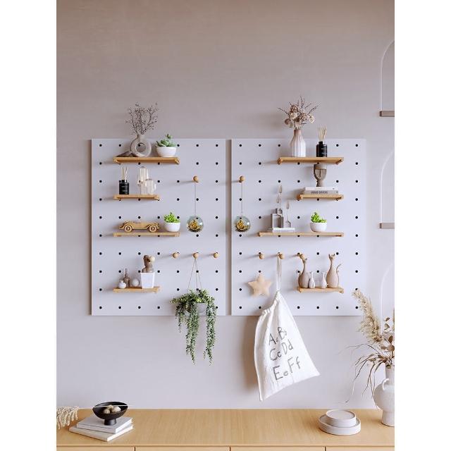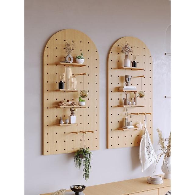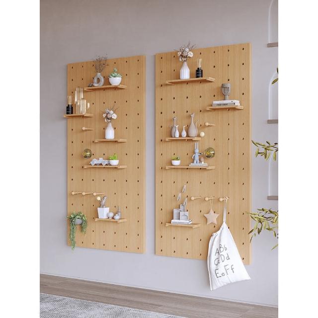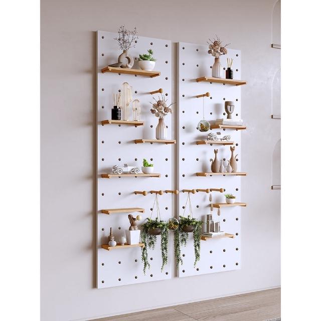 實木洞洞板定製牆上裝飾隔板置物架層板入戶木質客廳玄關收納架