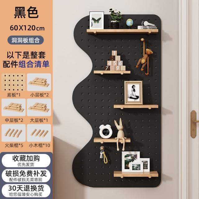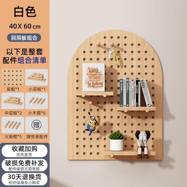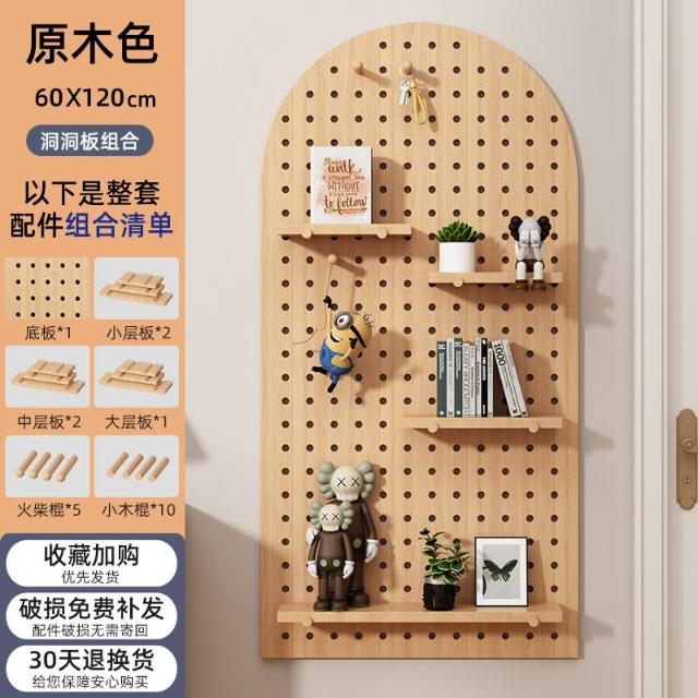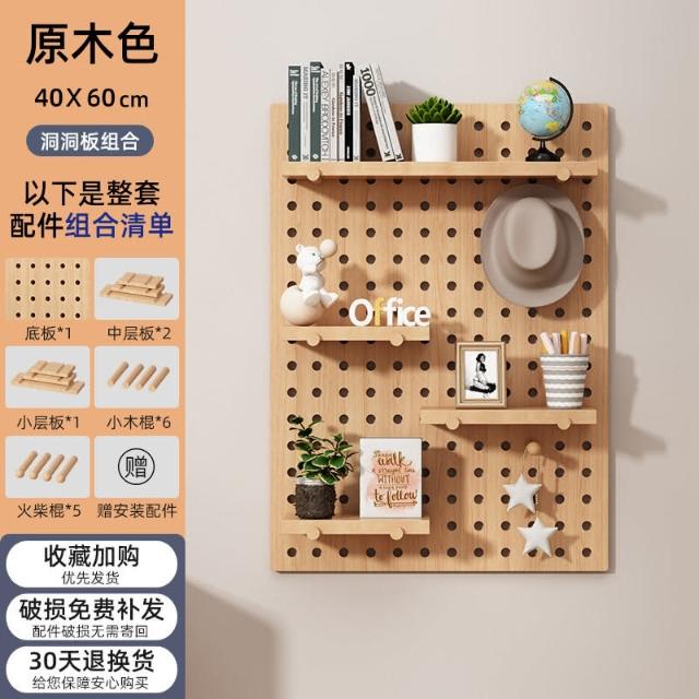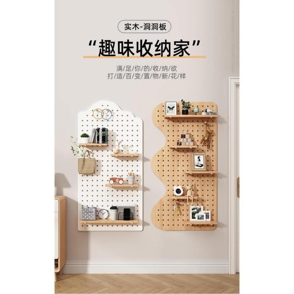 實木洞洞板牆上置物架入戶玄關掛板縫紉機線架牆面收納展示架隔板