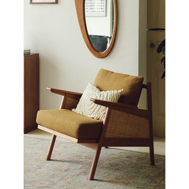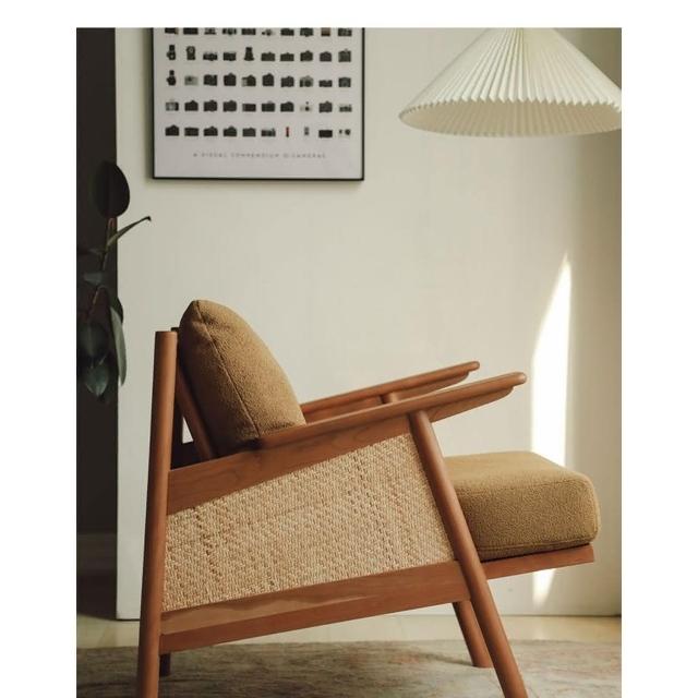 侘寂椅扶手椅單人沙發椅復古閱讀躺椅小戶型客廳陽台休閑藤編椅子
