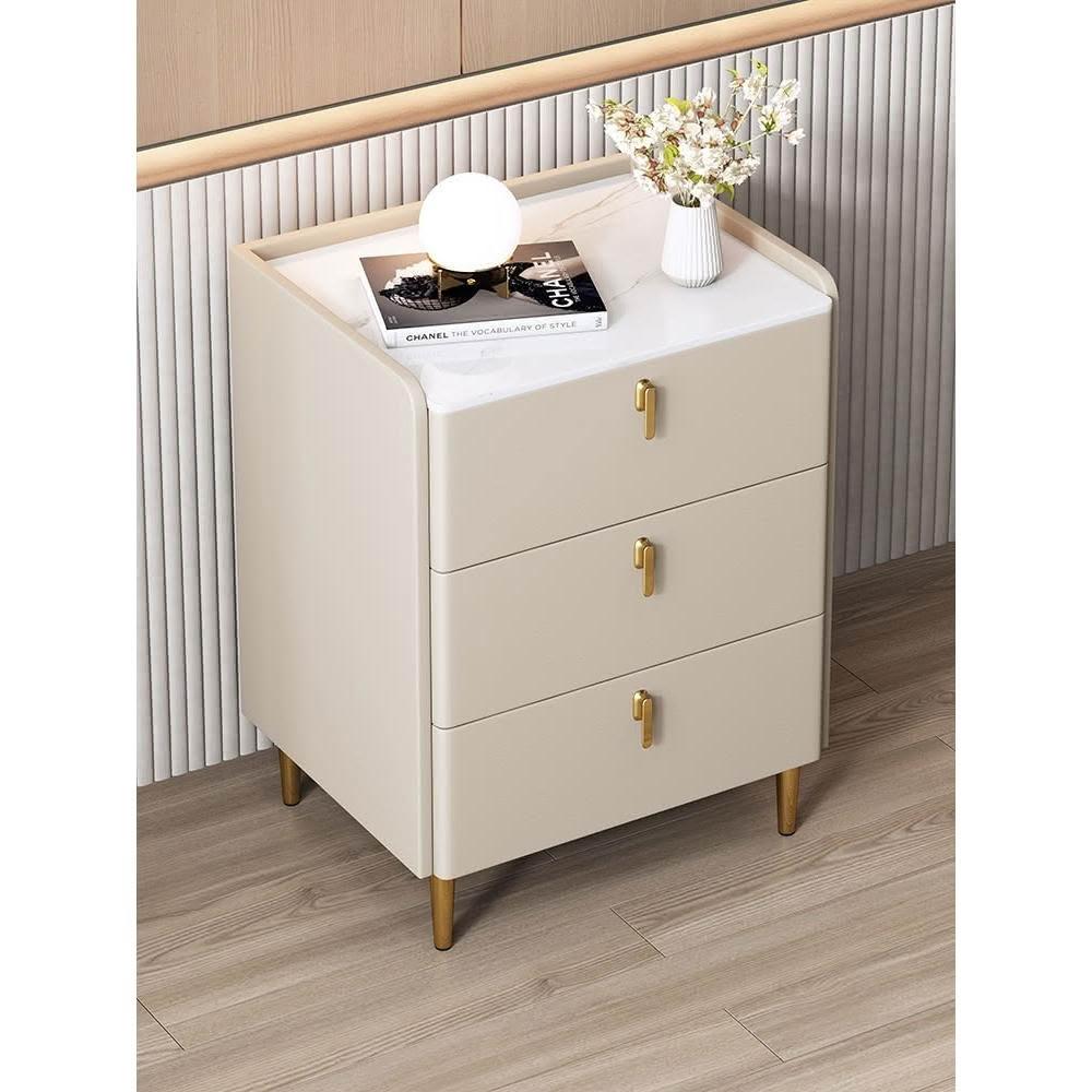 簡約現代床頭櫃家用臥室60cm高床邊櫃輕奢意式實木岩板收納櫃子
