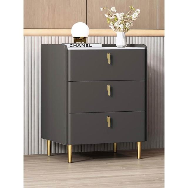 簡約現代床頭櫃家用臥室60cm高床邊櫃輕奢意式實木岩板收納櫃子