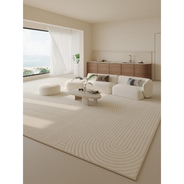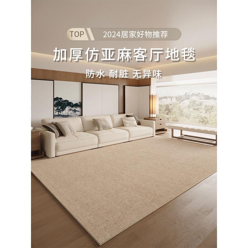 2024新款亞麻地毯素色耐髒客廳茶几地毯臥室床邊毯地墊免洗易打理