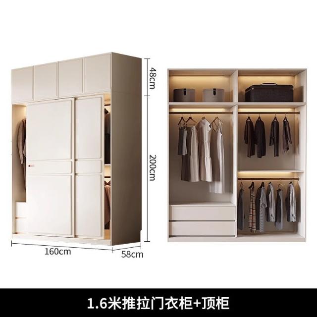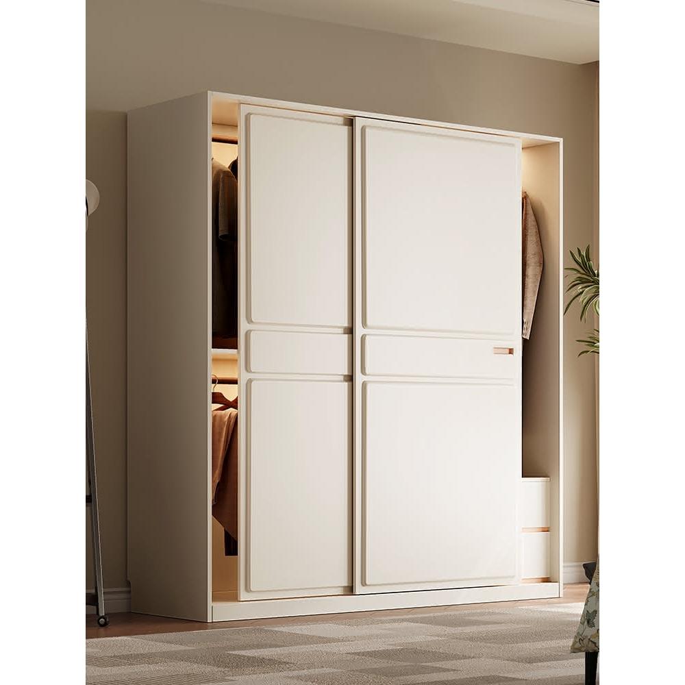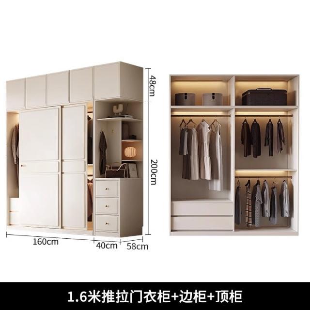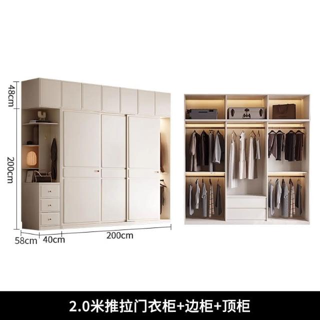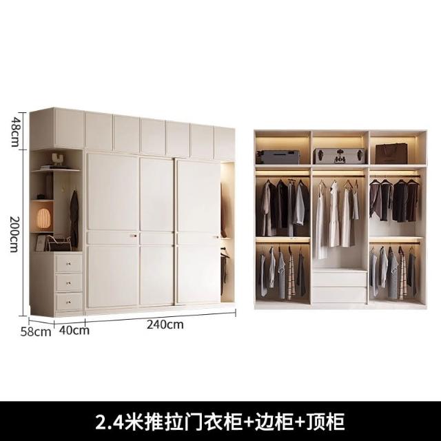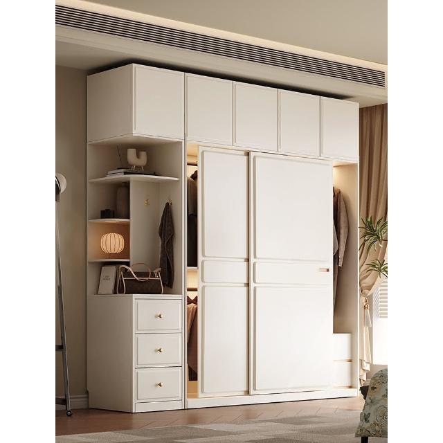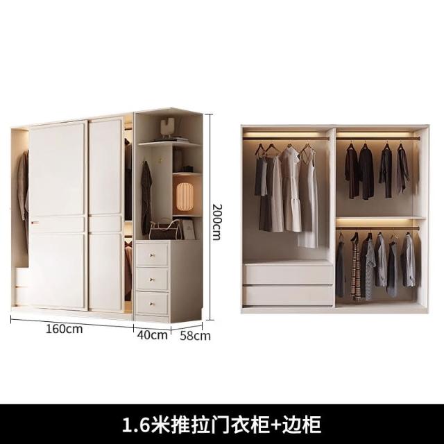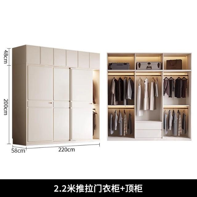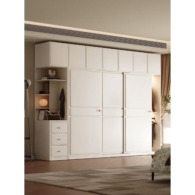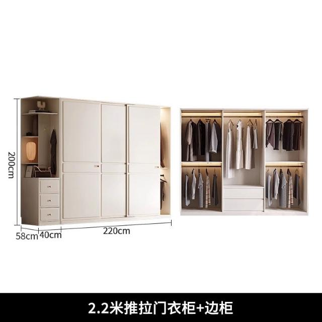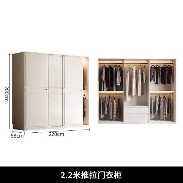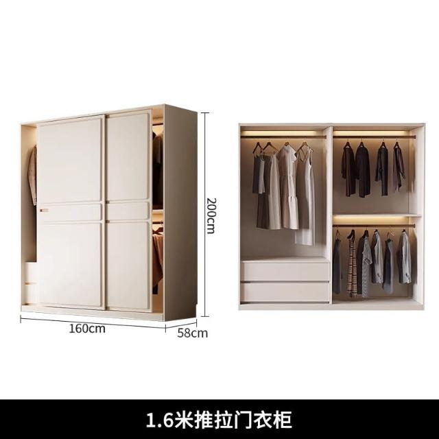 奶油風推拉門衣櫃臥室家用小戶型現代簡約滑移門儲物成品佛山衣櫥