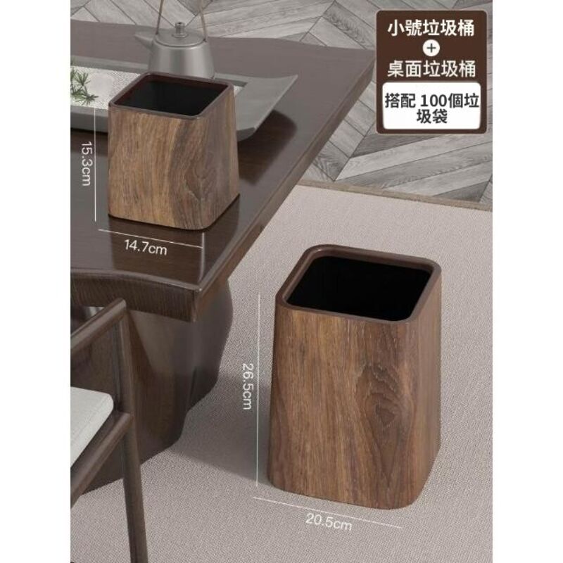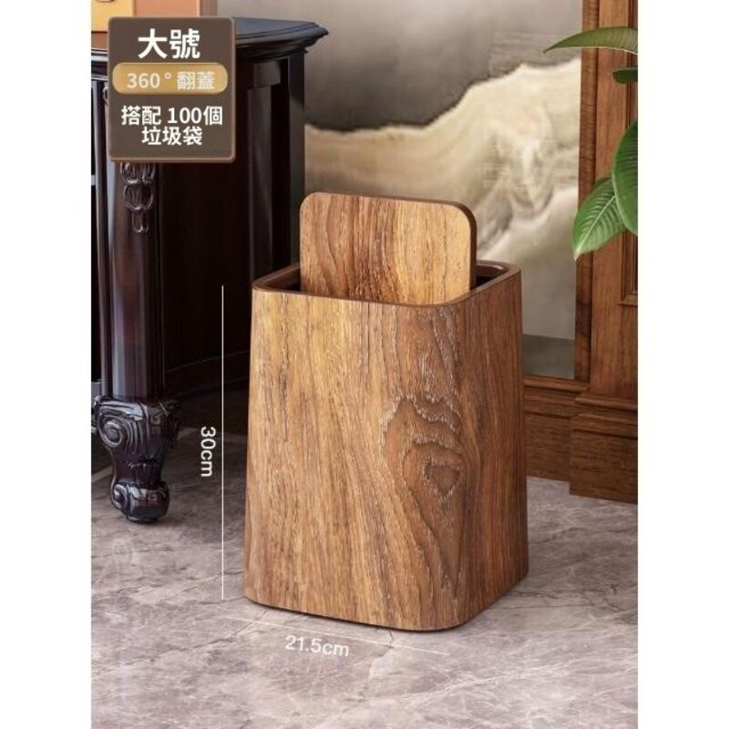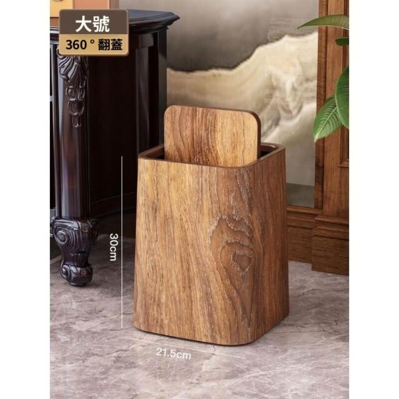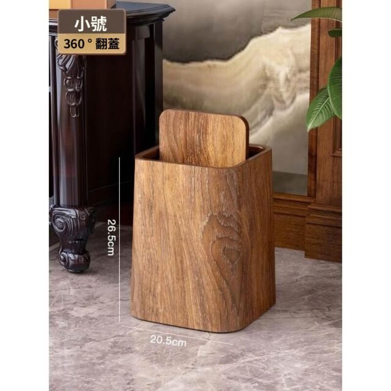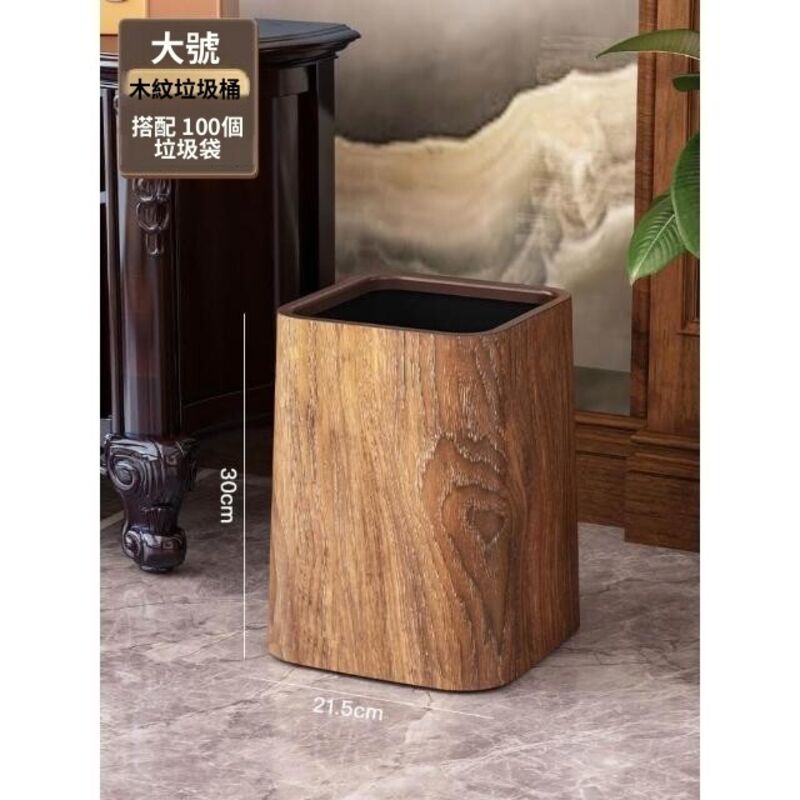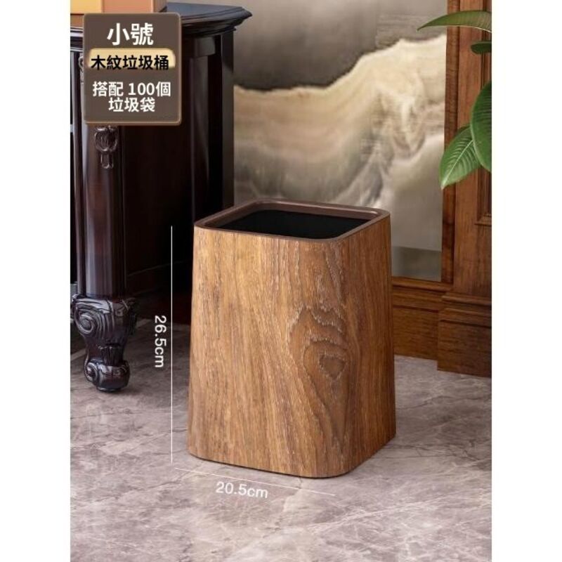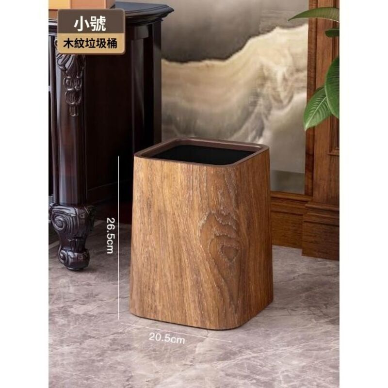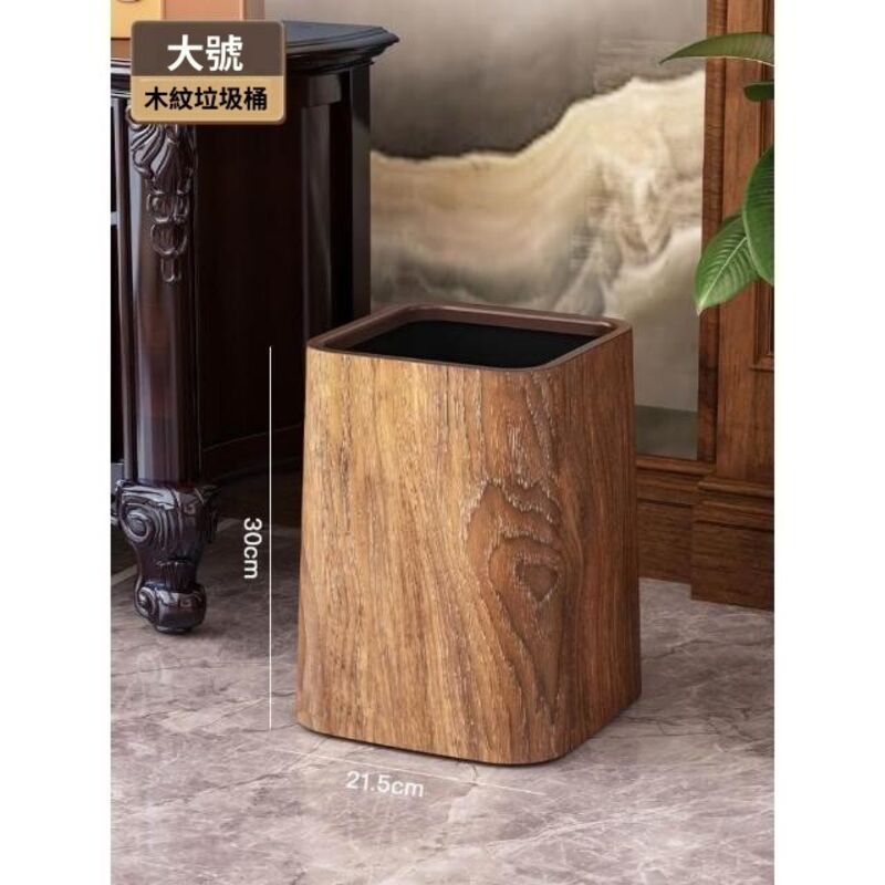 木紋垃圾桶家用客廳復古創意臥室廚房新中式高顏值大號衛生間紙簍