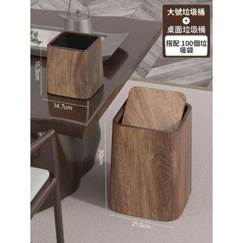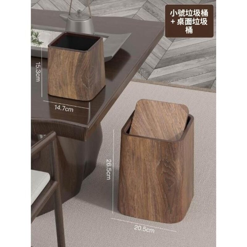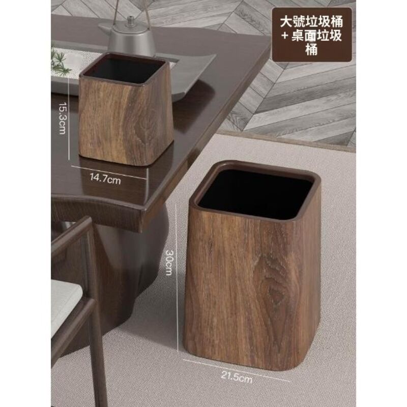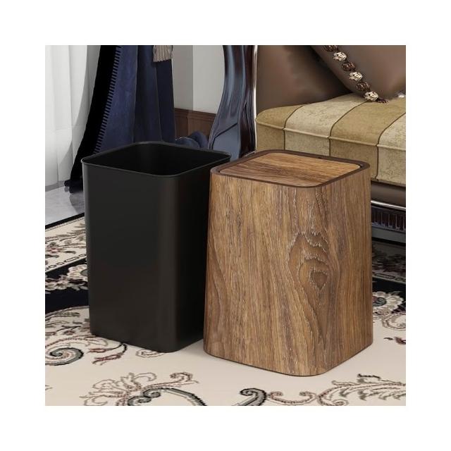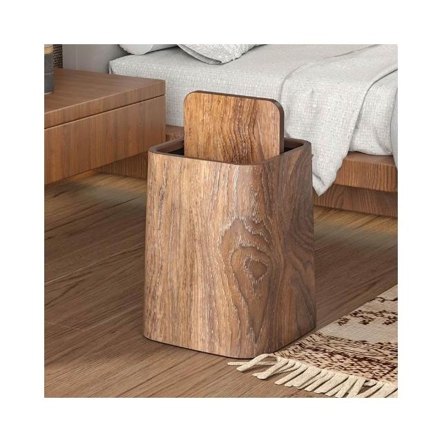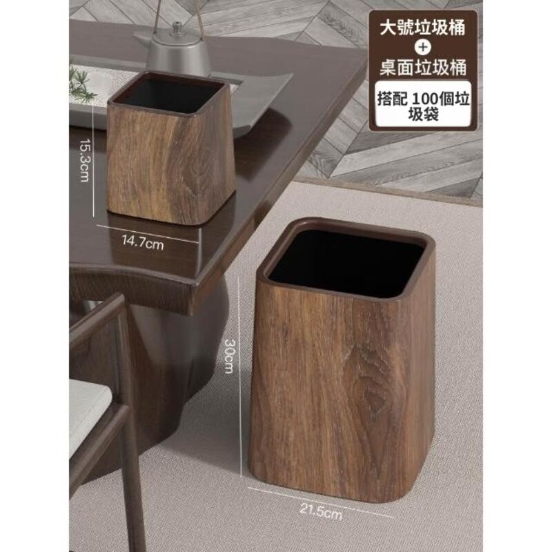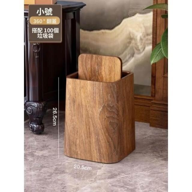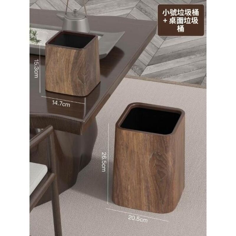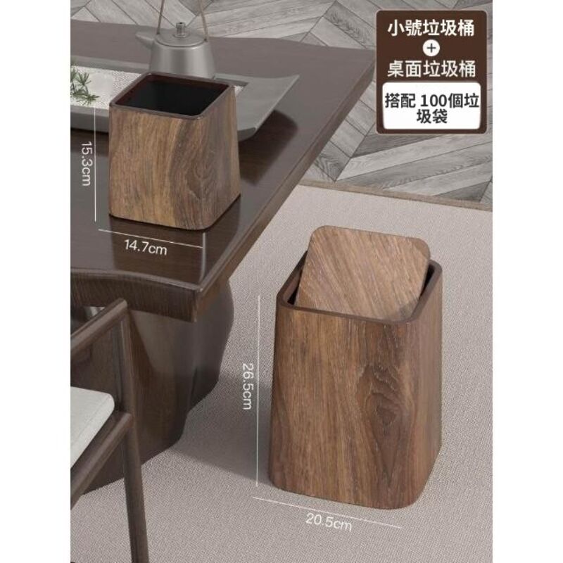 木紋垃圾桶家用客廳復古創意臥室廚房新中式高顏值大號衛生間紙簍