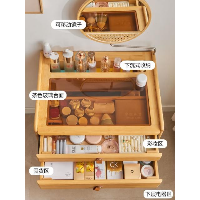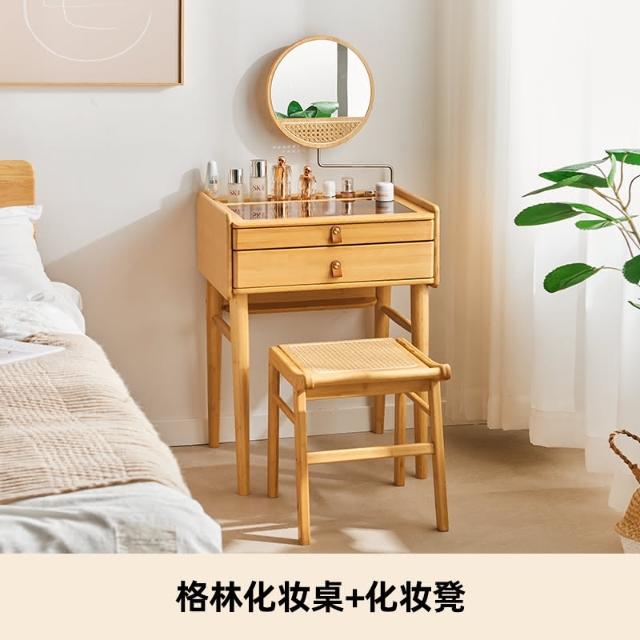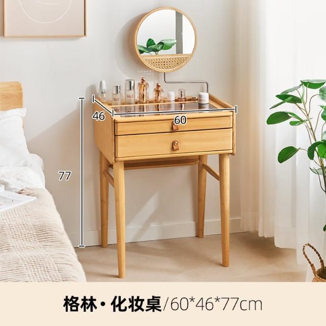日式梳粧檯臥室現代簡約小型原木風書桌極窄化妝臺帶鏡子化妝桌子
