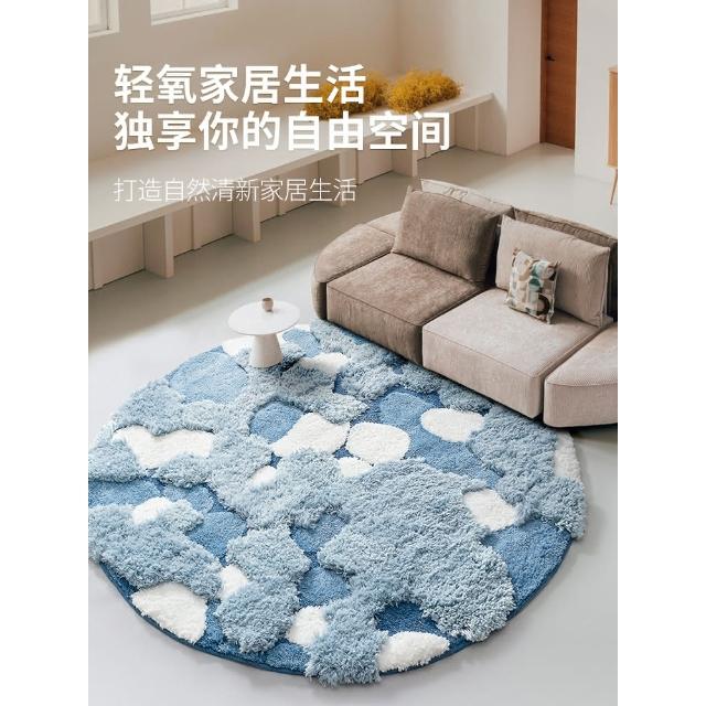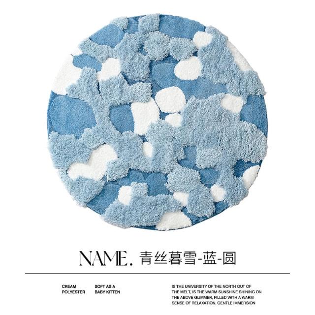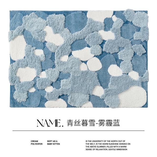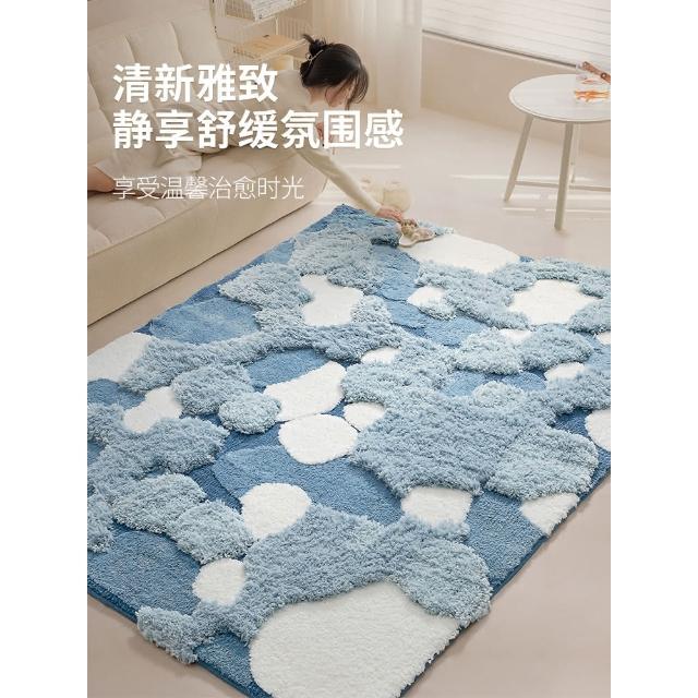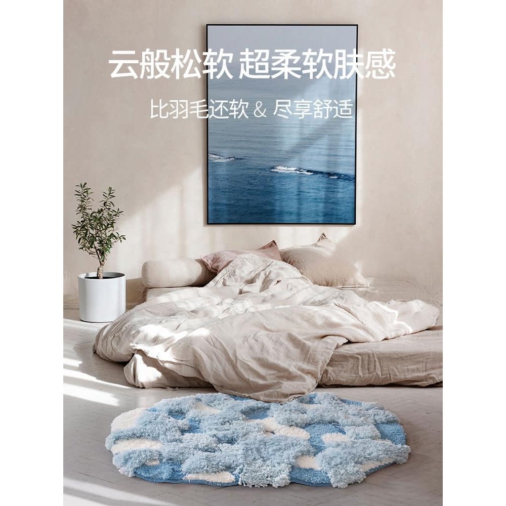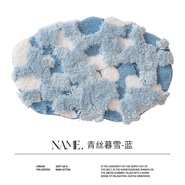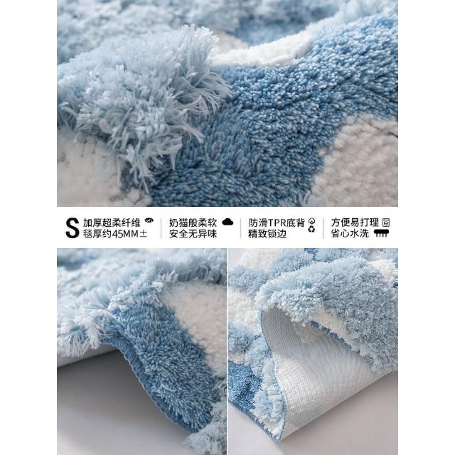 異形地毯臥室床邊毯門墊ins風霧藍高級感加厚毛絨陽臺飄窗地墊