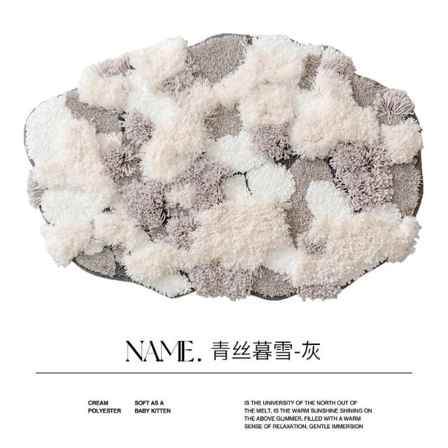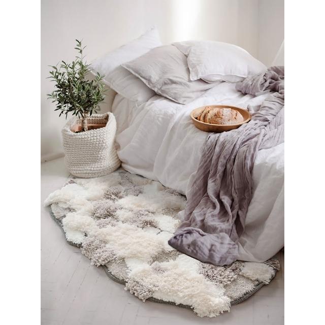 地毯不規則臥室床邊毯房間ins風客廳陽臺加厚地墊毛絨淺灰耐髒
