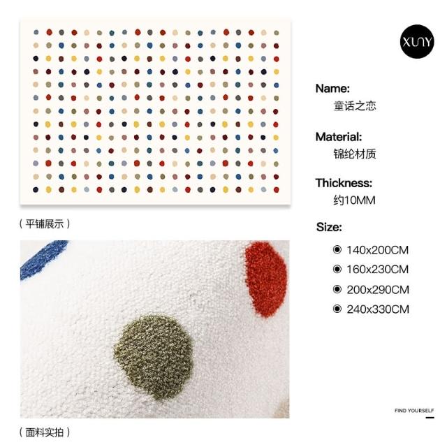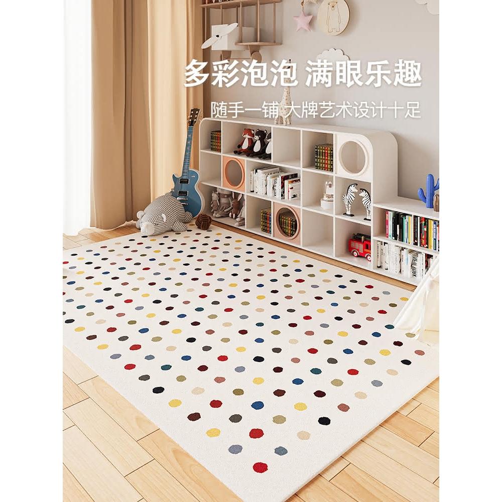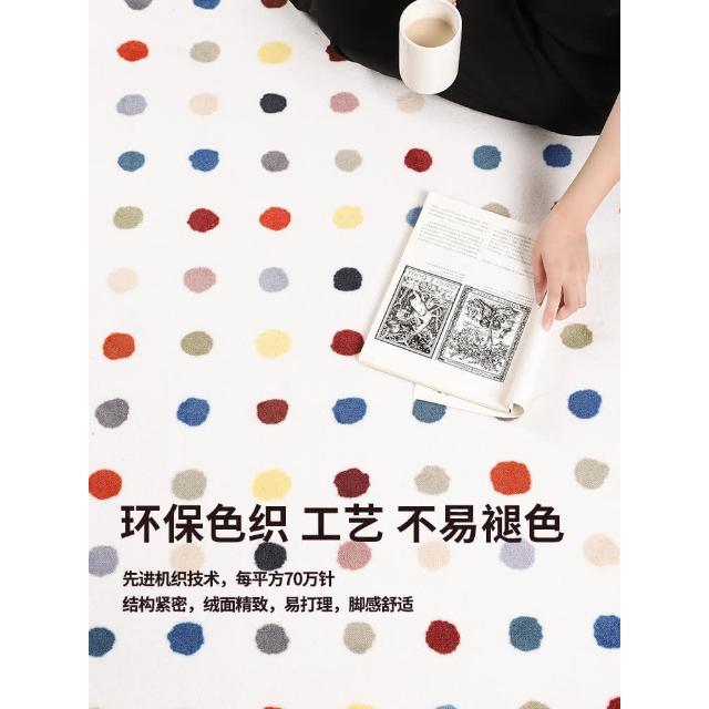 尋由彩色圓點ins風地毯現代簡約兒童房臥室床邊毯客廳茶几墊個性