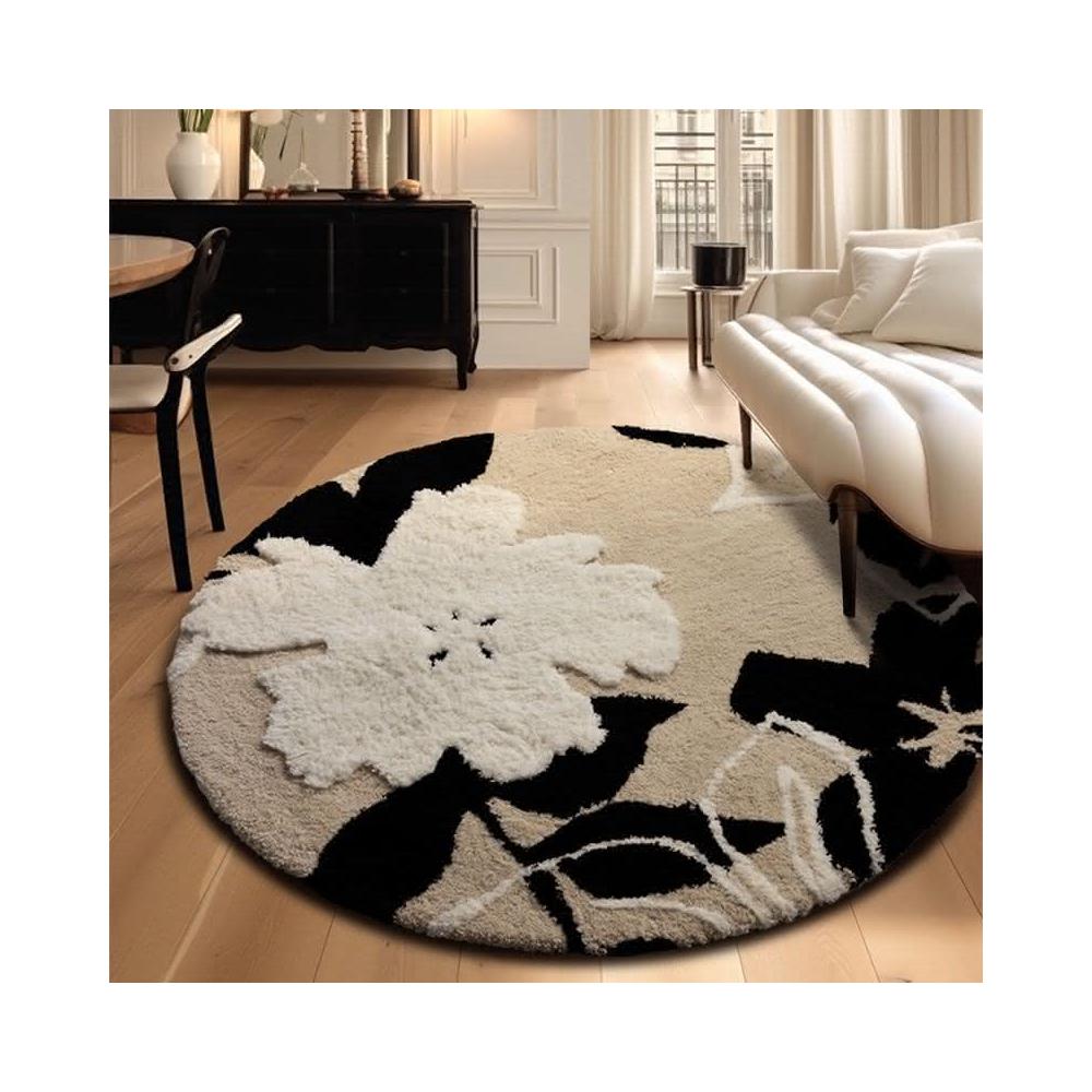 圓形地毯客廳吸水茶几毯法式復古花卉臥室床邊毯加厚植絨地毯批發