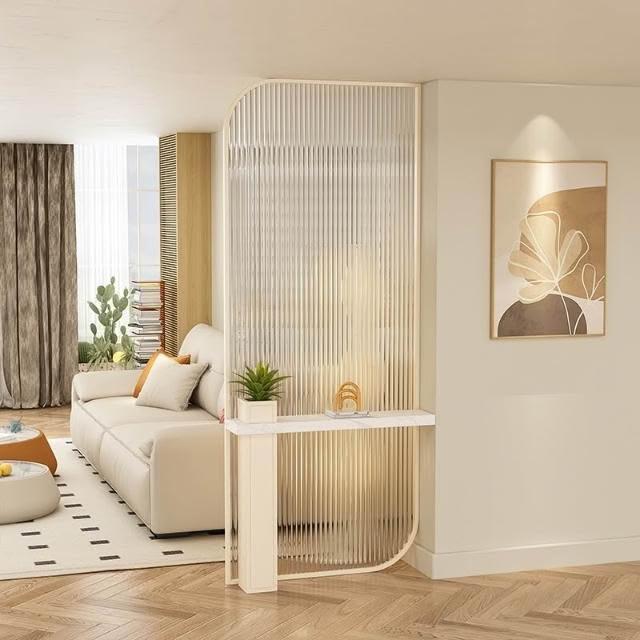 📜開立發票📜 北歐奶油風屏風 長虹玻璃屏風 入戶玄關 客廳燈帶裝飾 衛生間遮擋屏風 不銹鋼隔斷牆