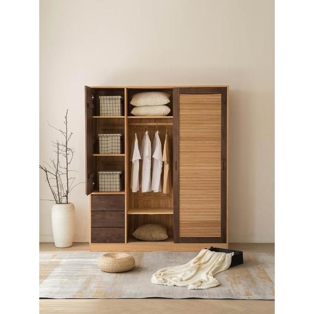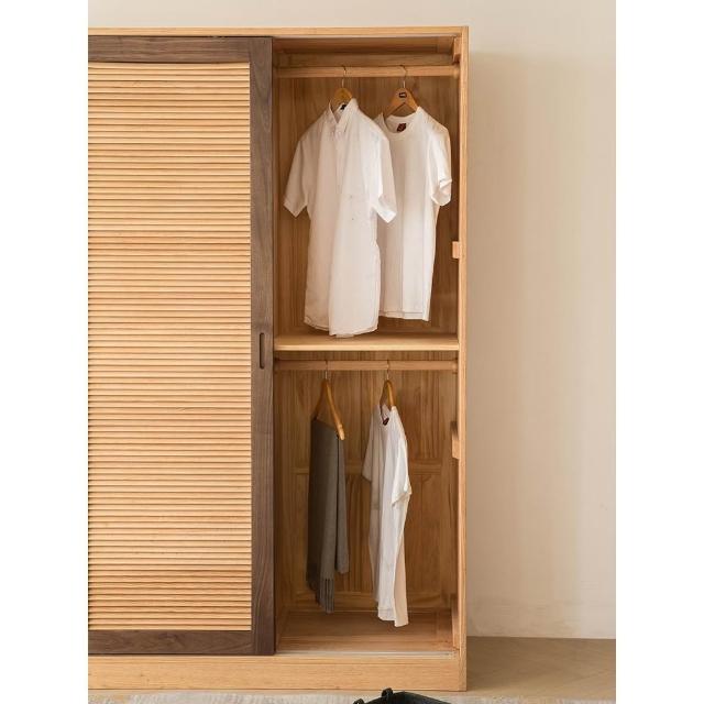⚡開立發票⚡ 日式原木風衣櫃 推拉門衣櫃 臥室移門衣櫥 附抽衣櫃 收納儲物櫃 民宿衣櫥 實木衣櫃