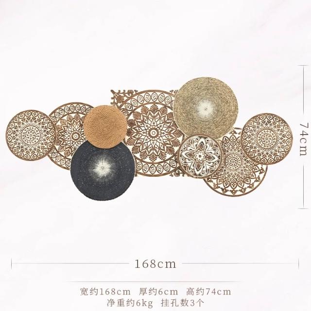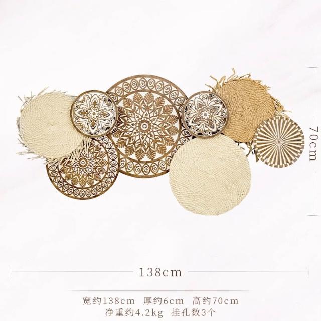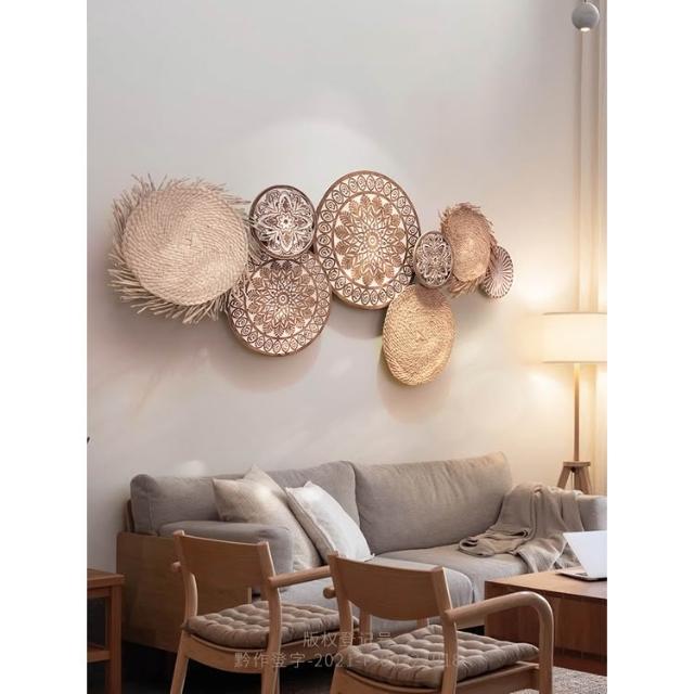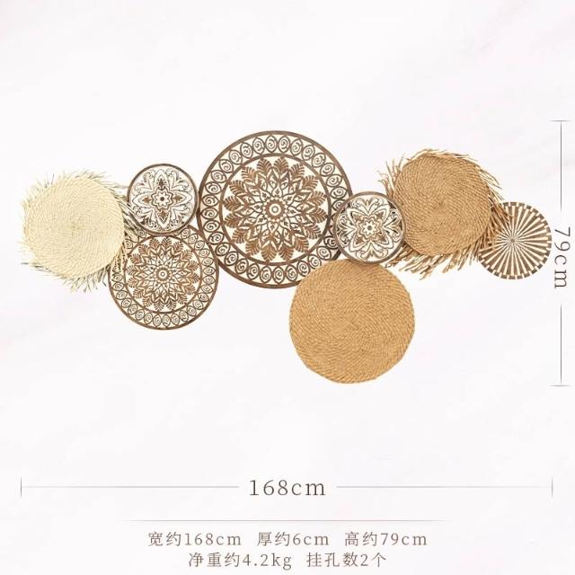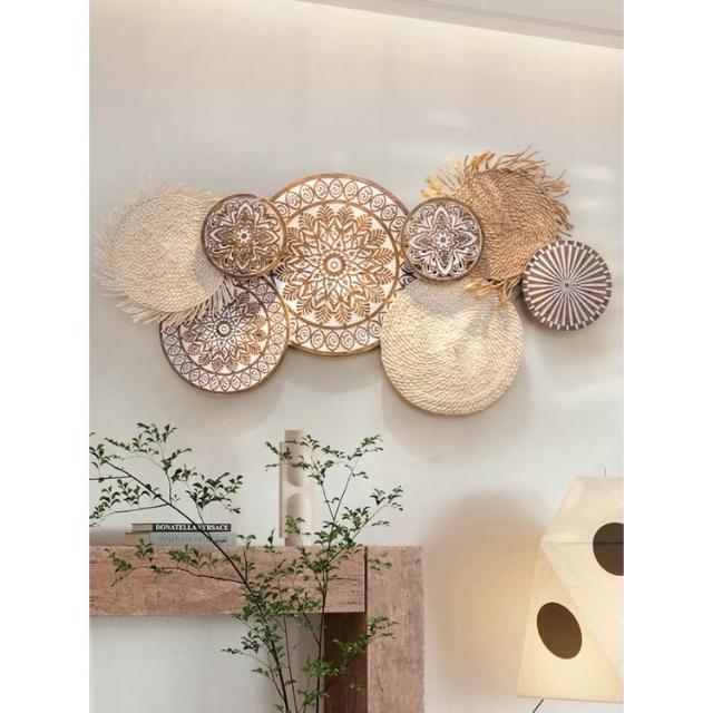 📜開立發票📜 日式侘寂風掛飾 民宿背景牆面裝飾 壁飾掛件 客廳牆飾 藤編圓形壁掛裝飾 卧室裝飾玄關