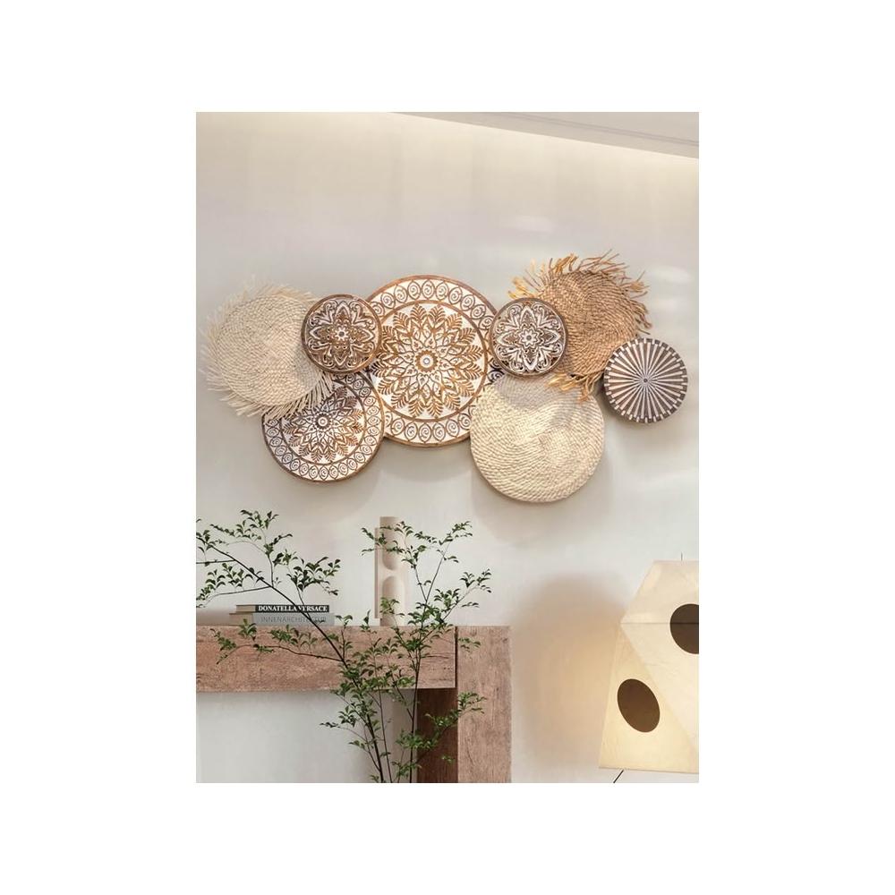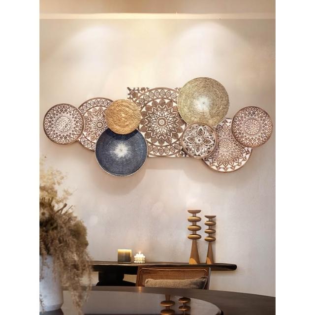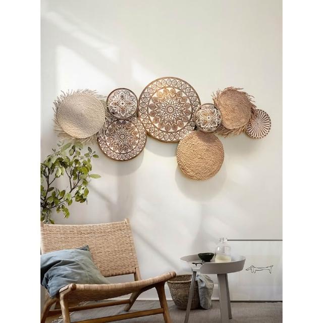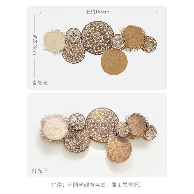 📜開立發票📜 日式侘寂風掛飾 民宿背景牆面裝飾 壁飾掛件 客廳牆飾 藤編圓形壁掛裝飾 卧室裝飾玄關