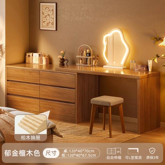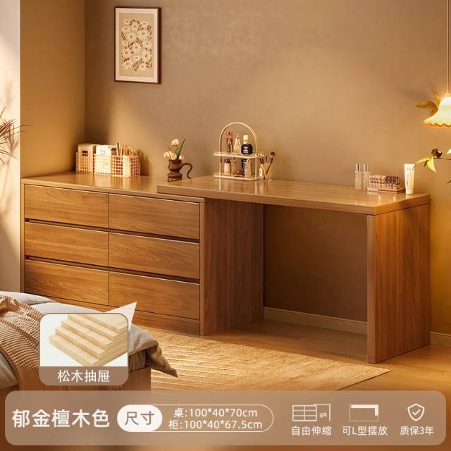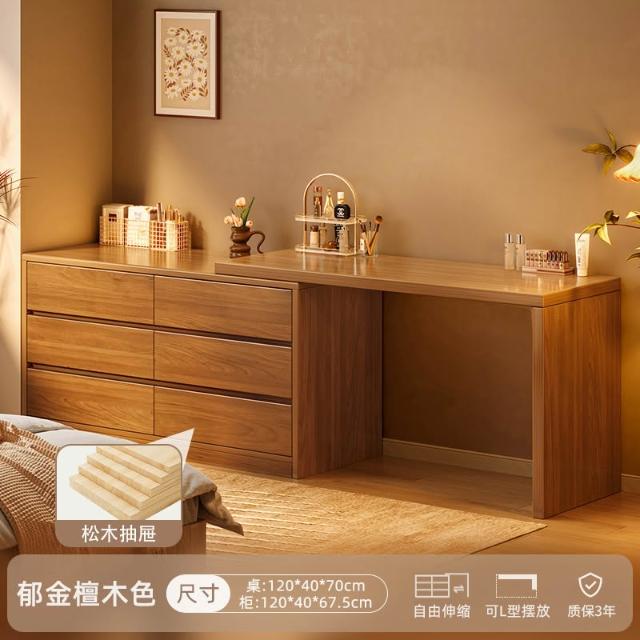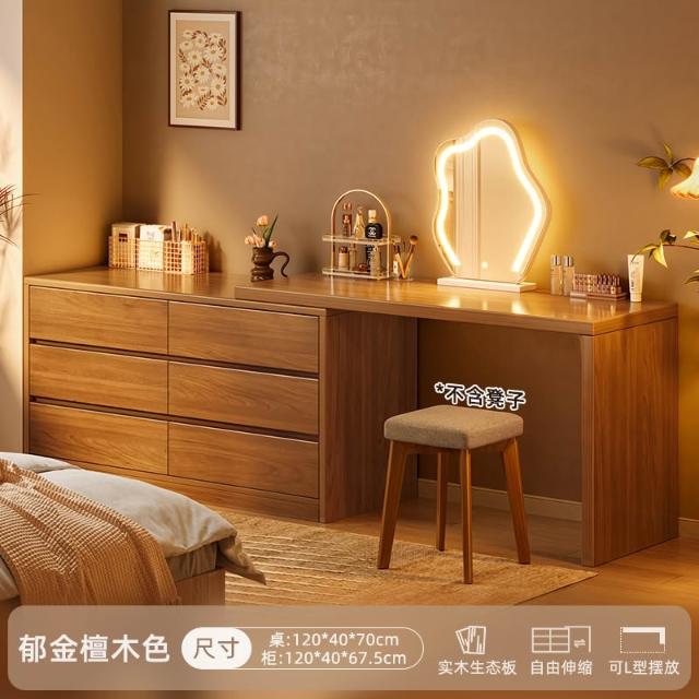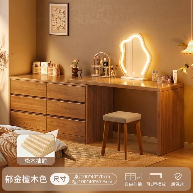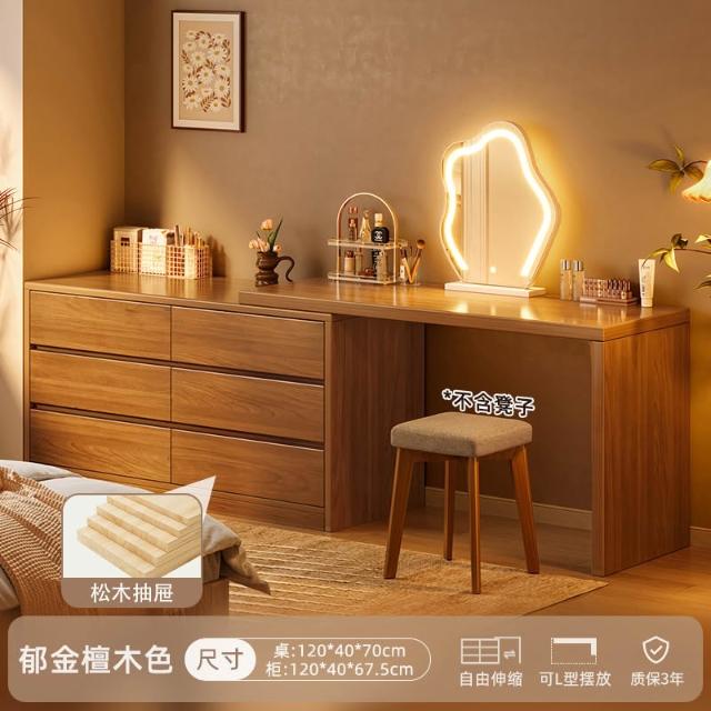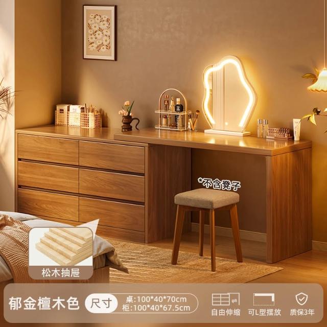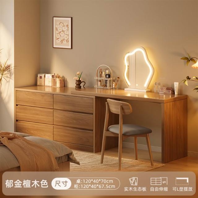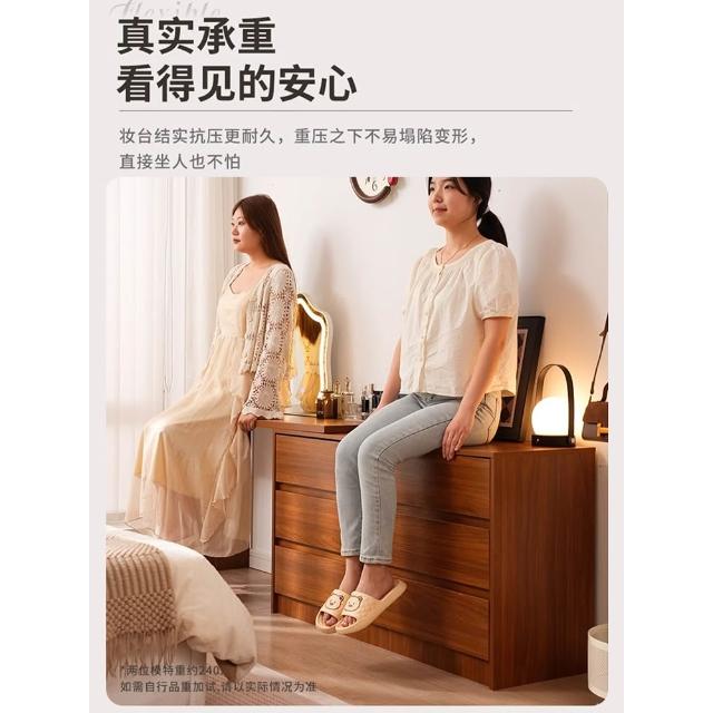 實木梳妝臺臥室簡約現代2025新款床尾鬥櫃化妝臺一體新中式化妝桌