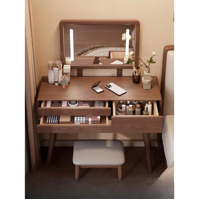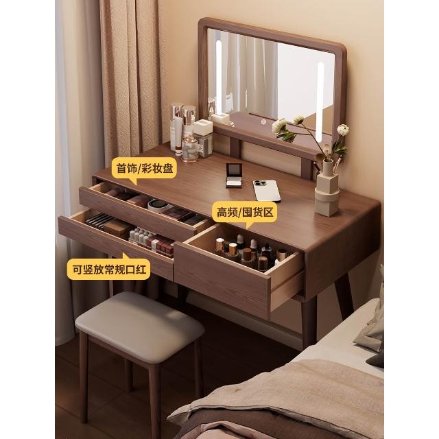 實木梳妝臺臥室現代簡約2025新款化妝櫃中式化妝桌胡桃小型化妝臺