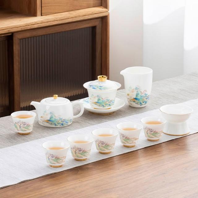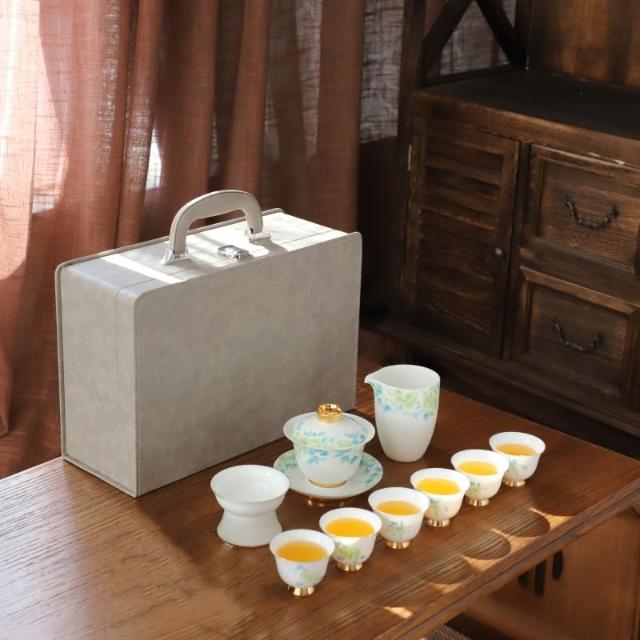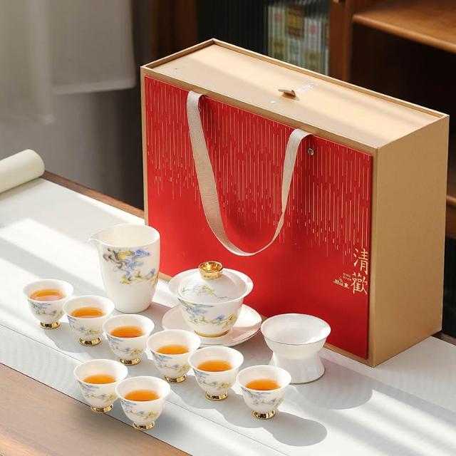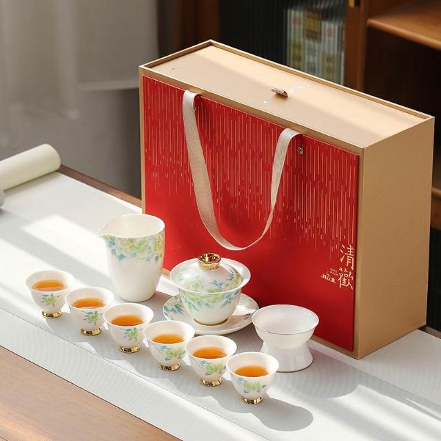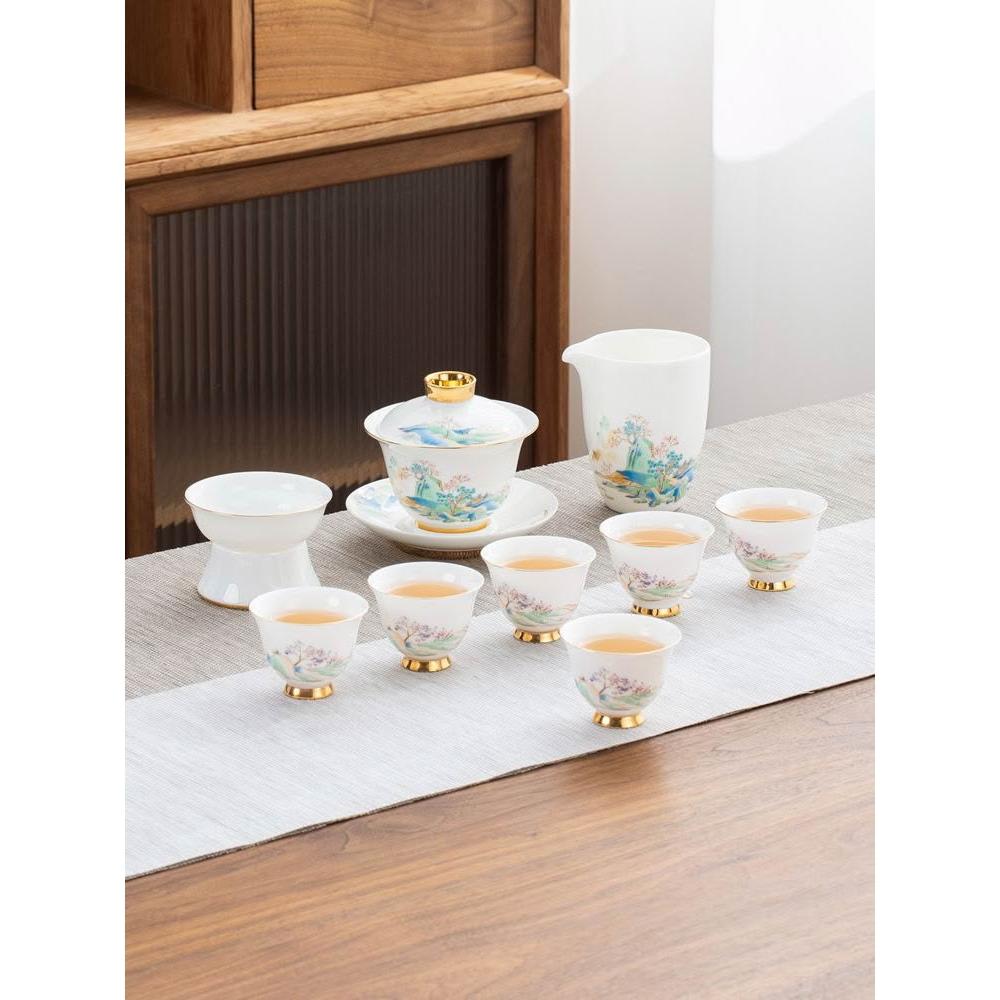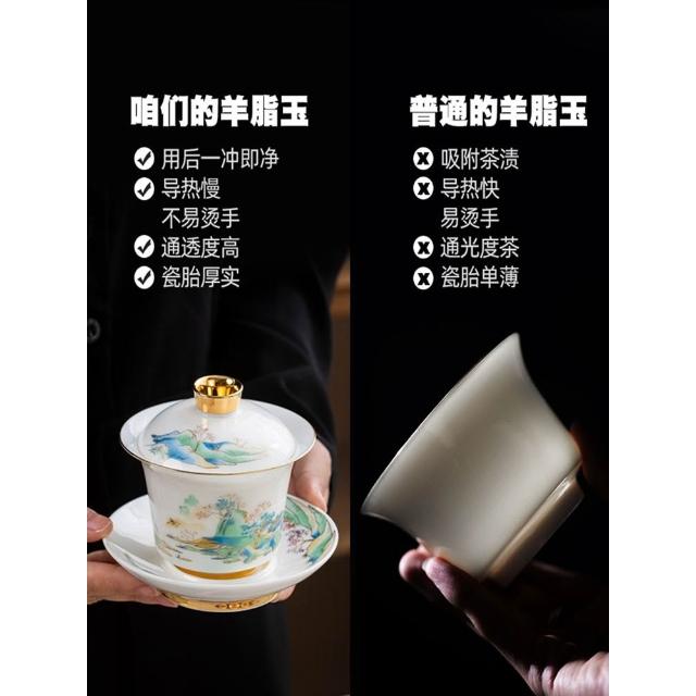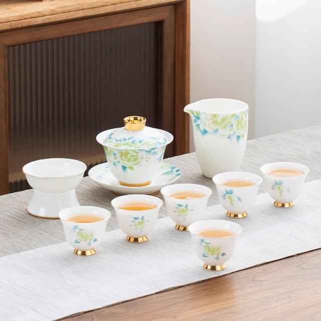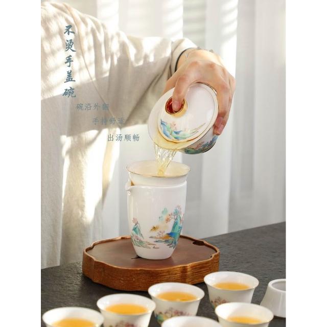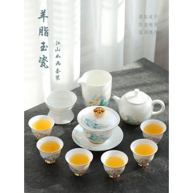 羊脂玉白瓷功夫茶具簡約風家用中式客廳蓋碗泡茶壺茶杯套裝伴手禮