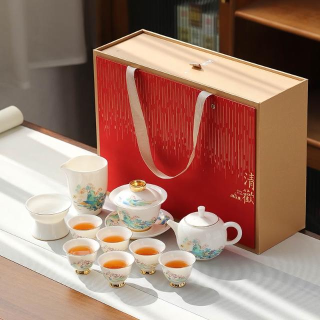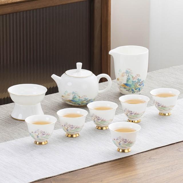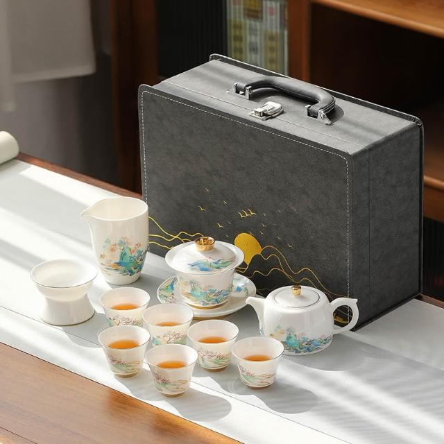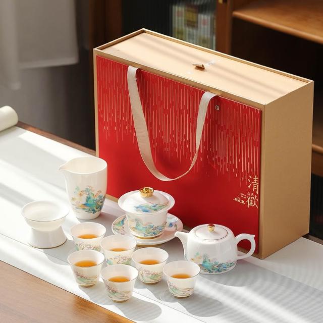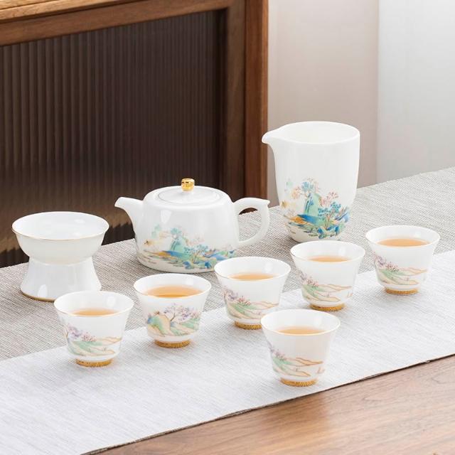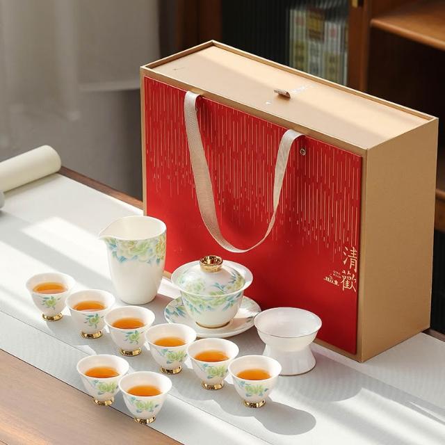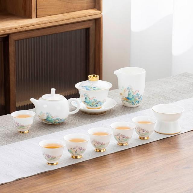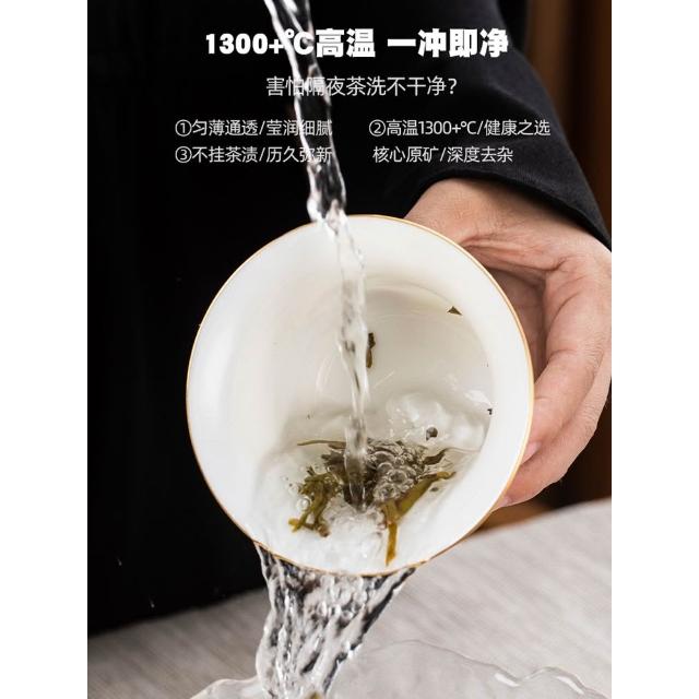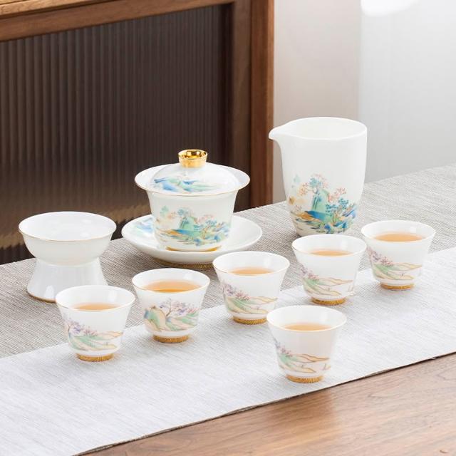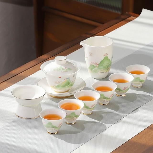 羊脂玉白瓷功夫茶具簡約風家用中式客廳蓋碗泡茶壺茶杯套裝伴手禮