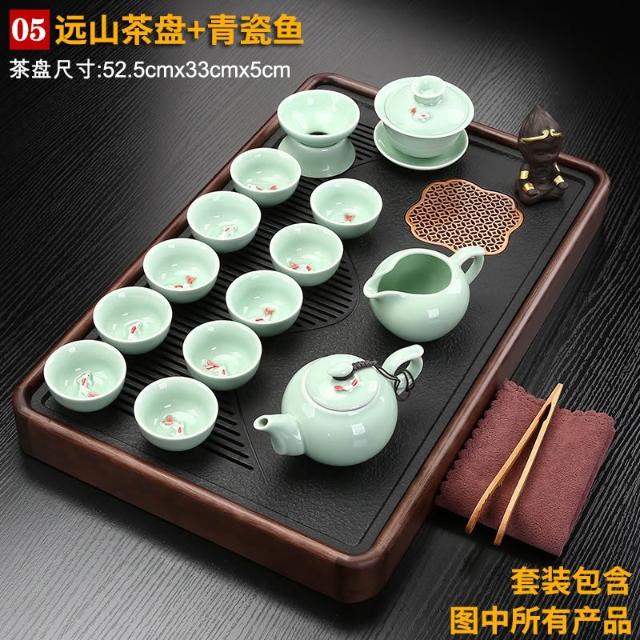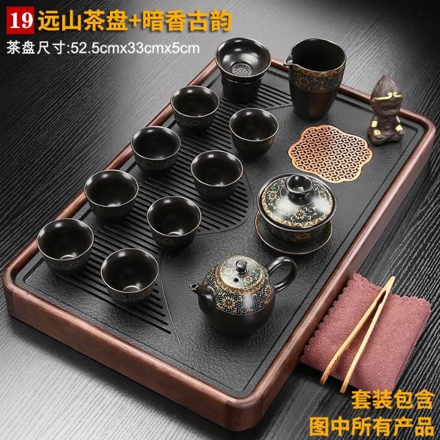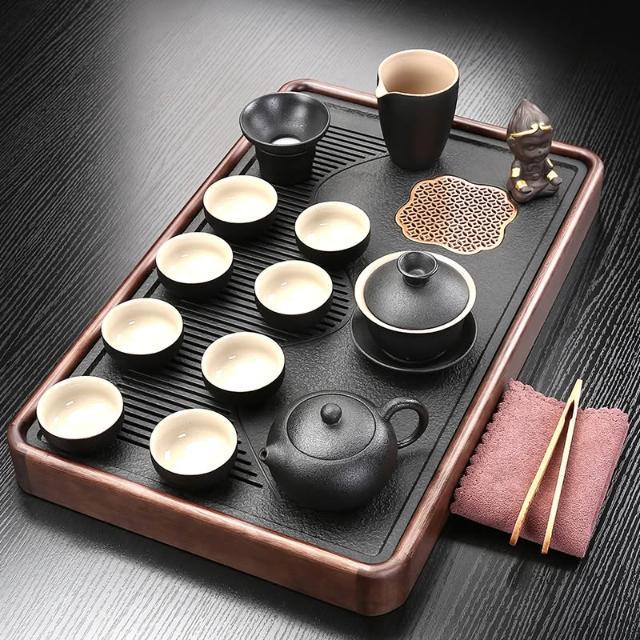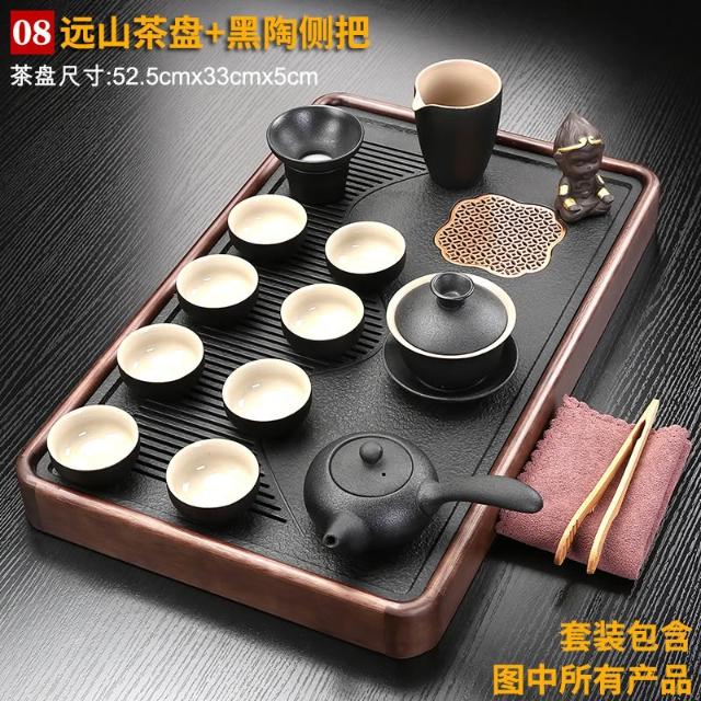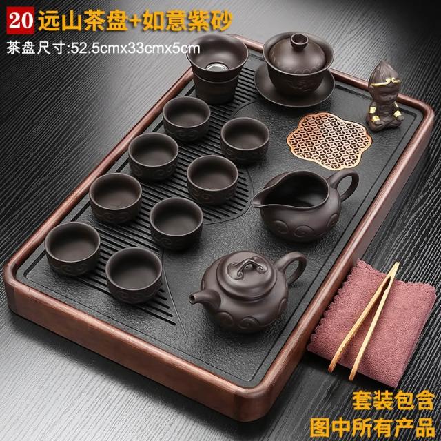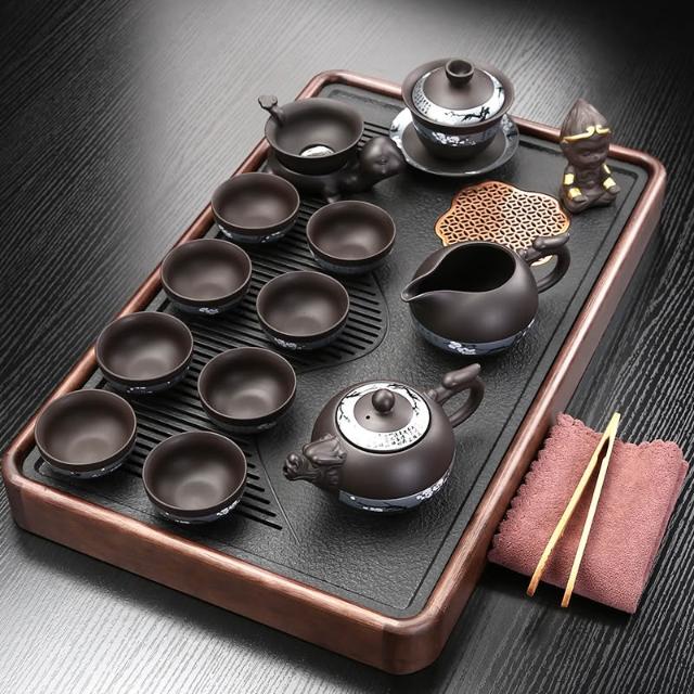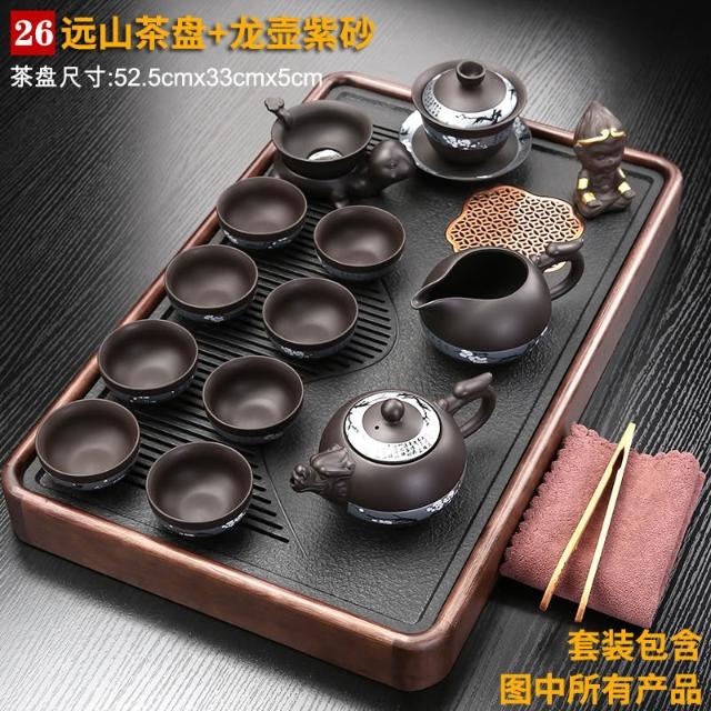 紫砂茶具套裝家用客廳功夫茶杯小型實木茶盤排水茶台辦公室泡茶壺