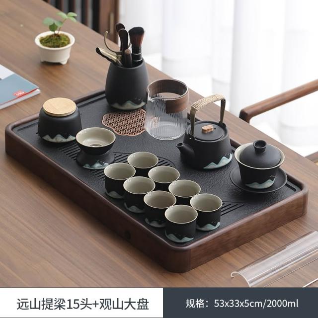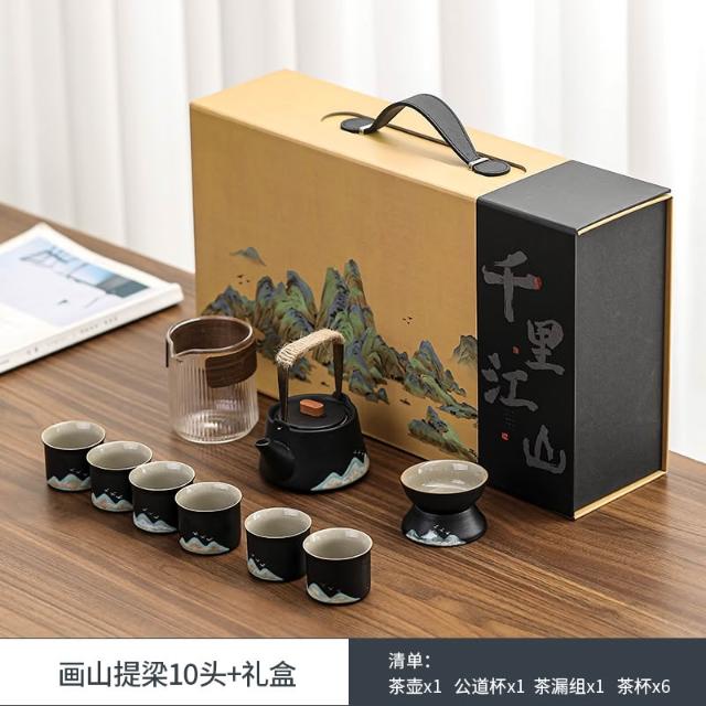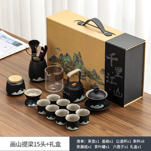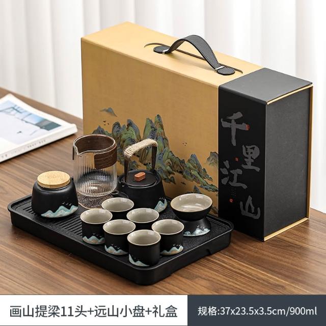 現代手繪功夫茶具套裝家用茶盤泡茶具整套茶壺茶杯商務會客送禮