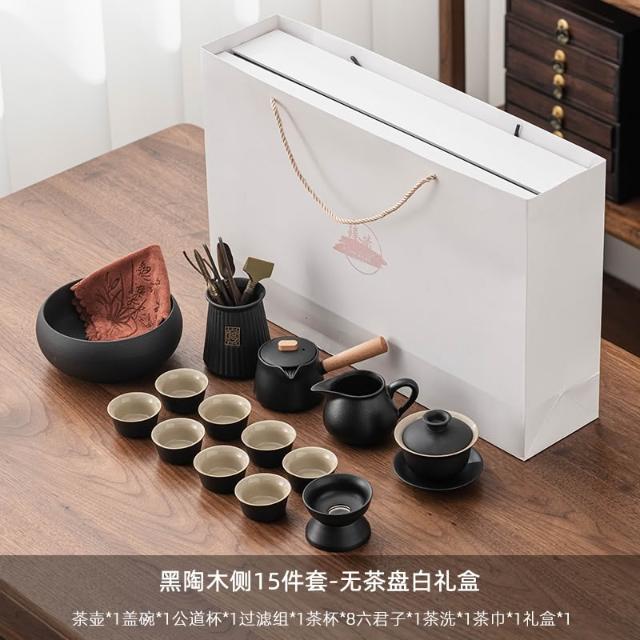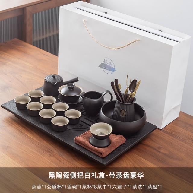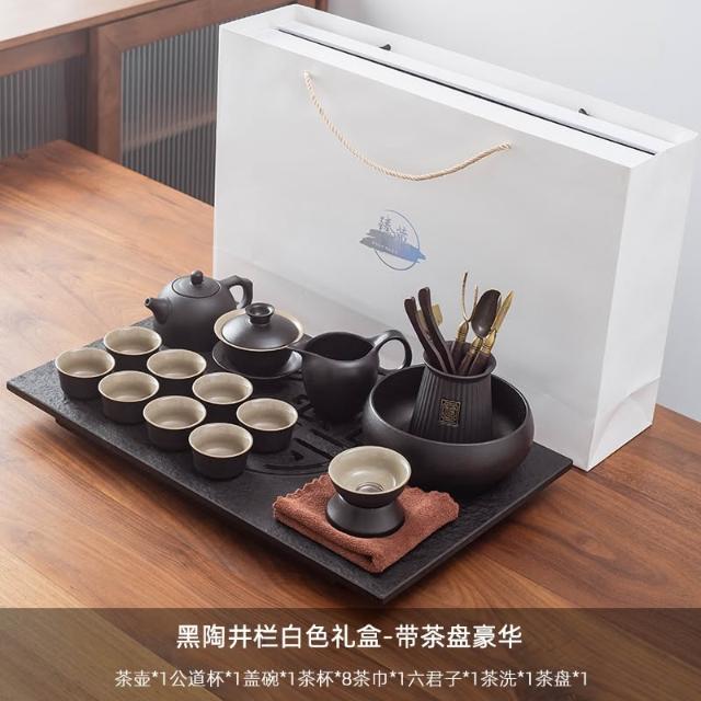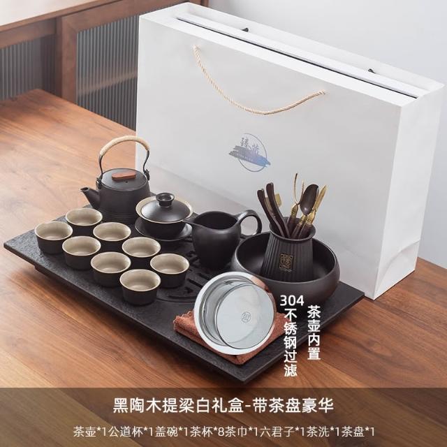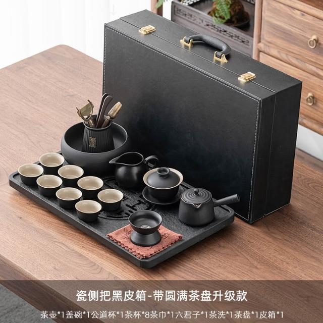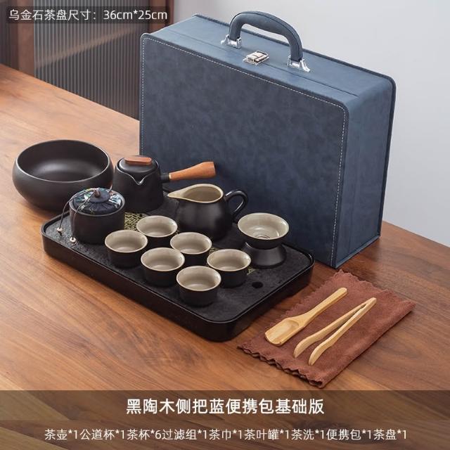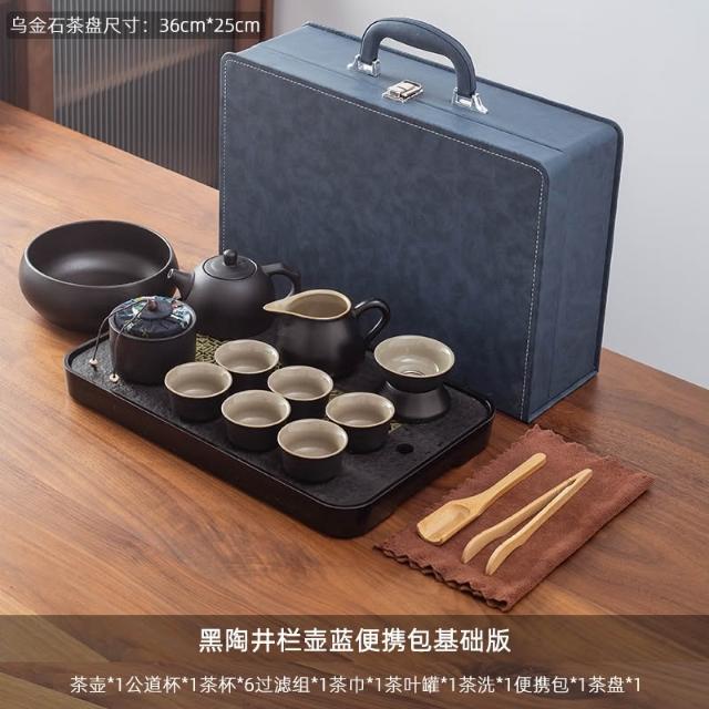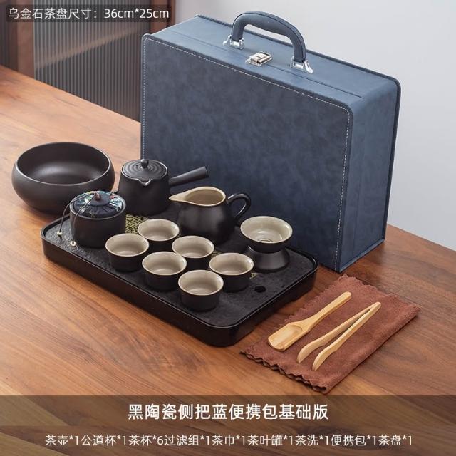 烏金石茶盤日式茶壺黑陶功夫茶具套裝家用輕奢辦公室會客整套禮盒