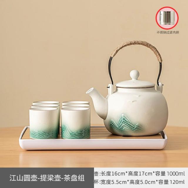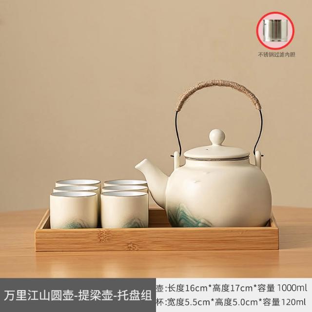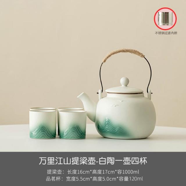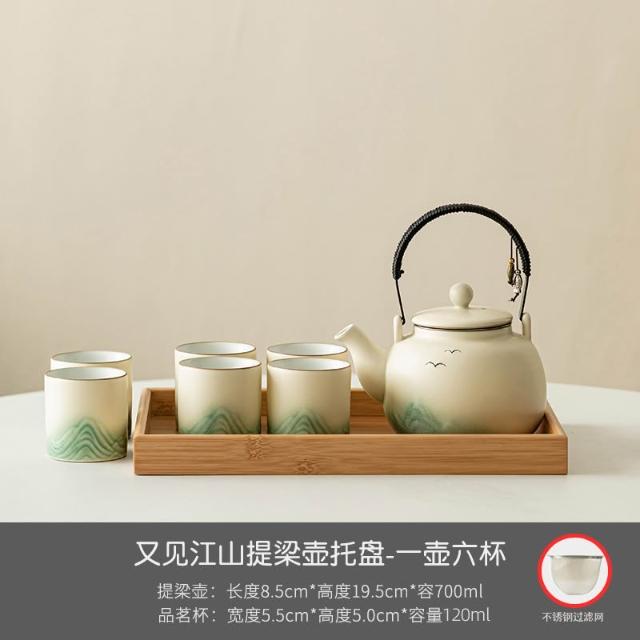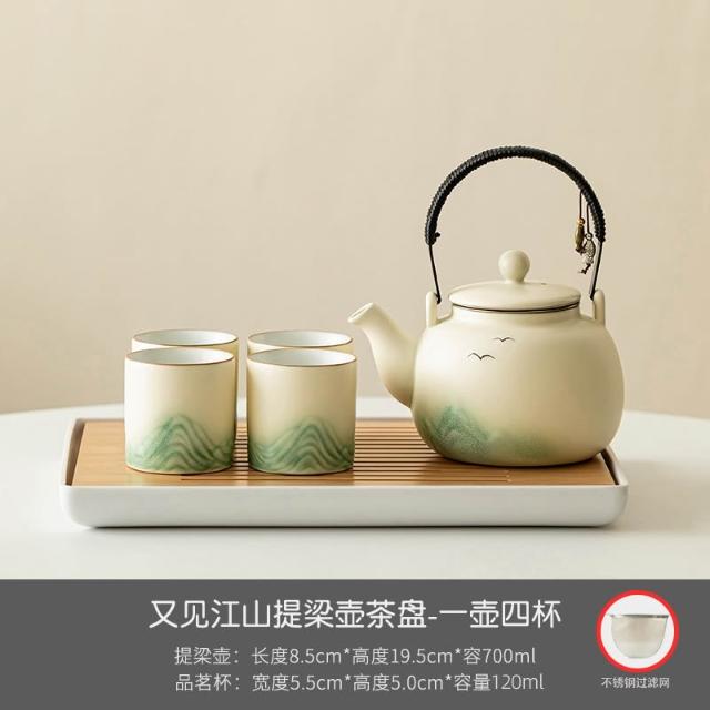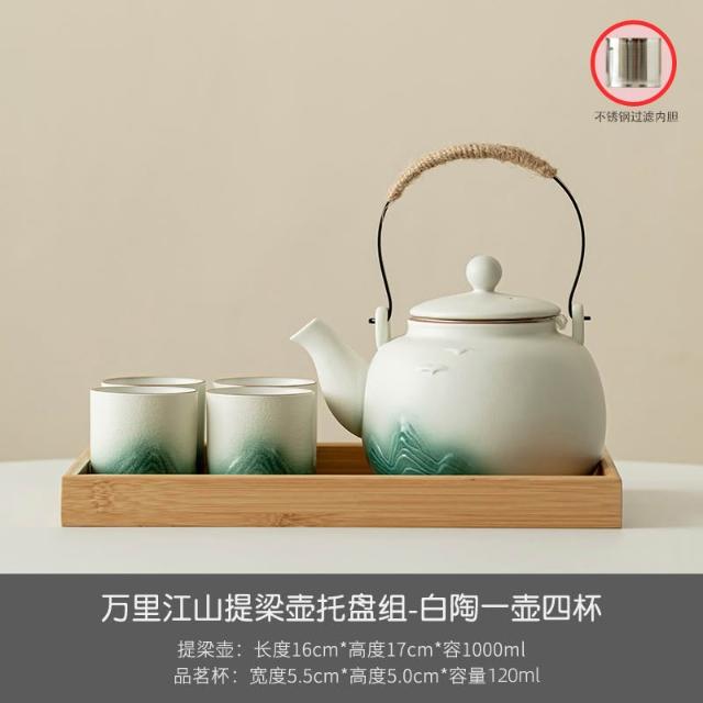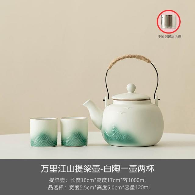 小清新提梁壺功夫茶具套裝陶瓷家用中式現代簡約大號茶壺茶杯